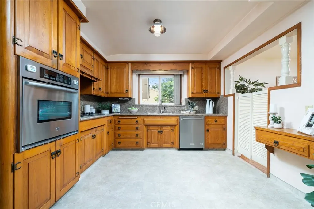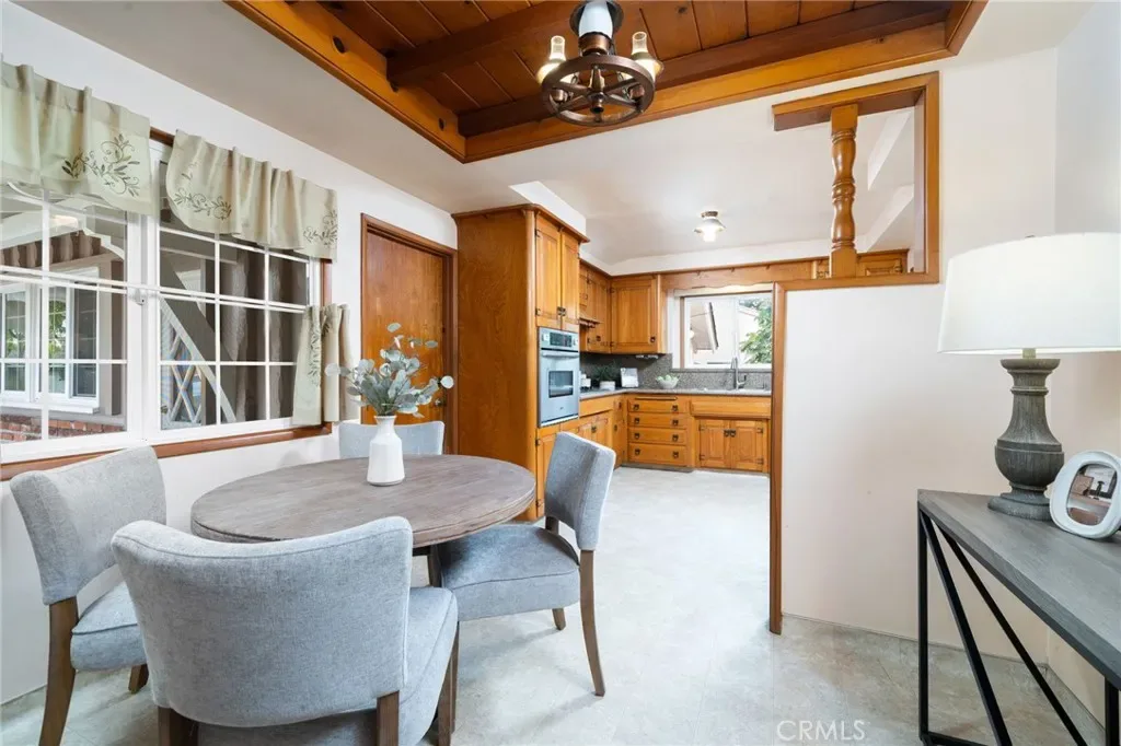 The home offers generous living spaces filled with natural light from dual pane windows and slider, creating an open and airy feel perfect for both relaxing and entertaining. Original built-ins and preserved wood details add a level of craftsmanship and personality that’s hard to find. The kitchen is a true highlight, featuring pristine original wood cabinetry with granite counters that brings warmth, charm, and functionality together in a way that feels both nostalgic and inviting.