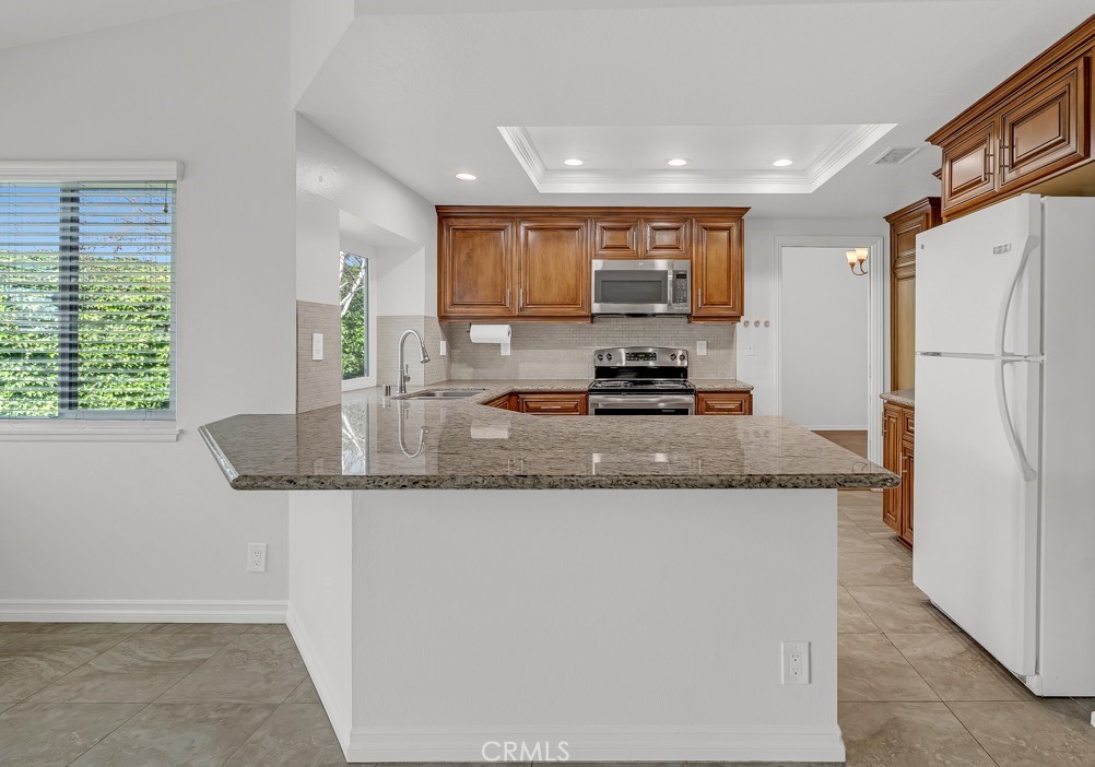 This very desirable hard to find 3-bedroom, 2-bath single-story home is in turn-key condition and loaded with high-end upgrades. Situated on a private cul-de-sac just a short distance from a beautiful greenbelt park. Step inside to a bright, open floor plan that has been freshly painted throughout. The family room features a cozy fireplace with an elegant wood mantle. The kitchen, hallway, and all bathrooms have been beautifully updated with upgraded cabinetry and stunning granite countertops. The primary bedroom is a true retreat offering dual sinks in the bathroom featuring a tile and glass-enclosed shower with an adjacent soaking tub with ceiling fans installed in each bedroom. Throughout the home are energy-efficient, noise-canceling dual-pane windows ensuring a quiet and climate comfortable interior. The 2-car attached garage has been upgraded with a newly installed acrylic floor providing a clean and polished looking surface. Outside enjoy a private wrap-around backyard featuring a lush green yard and a spacious lattice-covered patio. Make an appointment today.