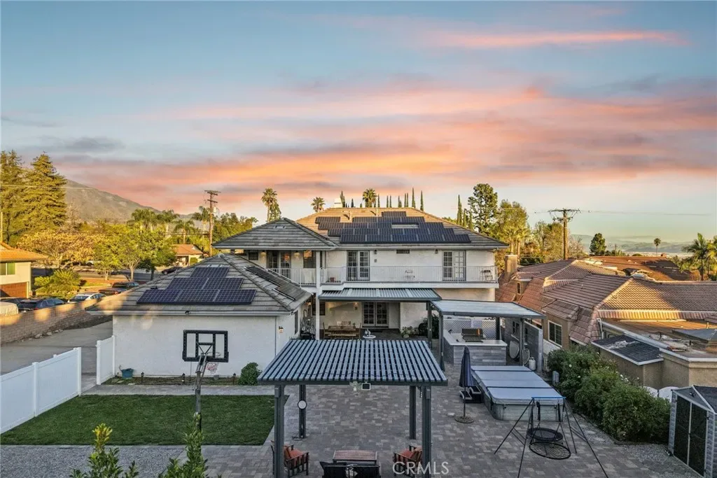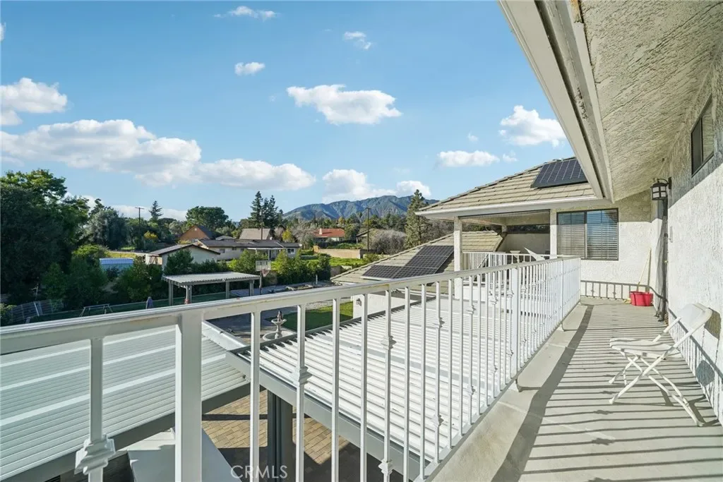 Welcome to your new home! Nestled at the foothills of prestigious San Antonio Heights, where Mt. Baldy’s snow-capped peaks create a stunning year-round backdrop—is a custom 4,451 square foot home with incredible curb appeal, timeless charm, and the backyard of your dreams. Walk through the front double doors to a sizeable foyer with soaring ceilings and a grand staircase that makes an unforgettable first impression. Natural light dances off the full mirrored wall in the formal dining room, complete with elegant French doors. Down the hallway you’ll find a bedroom with high ceilings and a ¾ bathroom, perfect as guest quarters or a home office. The large living room boasts an inviting fireplace and vaulted ceilings with plenty of room for family movie nights. Stylish recessed lighting has been added throughout key living areas, enhancing the home’s ambiance day and night. The informal dining room easily holds a table for 10 and sits just off the incredibly spacious kitchen—your home chef’s favorite room with its gas stove, endless cupboards, walk-in pantry, granite countertops, and breakfast bar. Just off the kitchen is an enormous bonus room that can hold a pool table on one end, with a ¾ bathroom and large office or 5th bedroom with wet bar on the other. With small modifications, it could serve as separate living quarters. Upstairs you’ll find two large bedrooms and a full bathroom with dual sinks for the kids. The exceptionally large primary suite features a fireplace, walk-in closet, dual sinks, glass shower, private toilet, and luxurious oval jetted tub. Each bedroom has French doors leading to a shared balcony with breathtaking mountain views. Recent upgrades provide peace of mind: a brand-new roof and new air conditioning units ensure lasting comfort through every season. The crowning jewel is the backyard. “Grey Haven” is an entertainer’s paradise featuring grey pavers, two manicured lawns, three organic garden beds, a large pergola, and an outdoor bar complete with Twin Eagles Grill and Perlick refrigerator. A stunning fountain sets the perfect ambiance, and the 13-foot swim spa seats nine. Custom landscape lighting transforms evenings into magic. This home also features a 4-car garage, leased solar, RV parking, and ¼ share water stock.