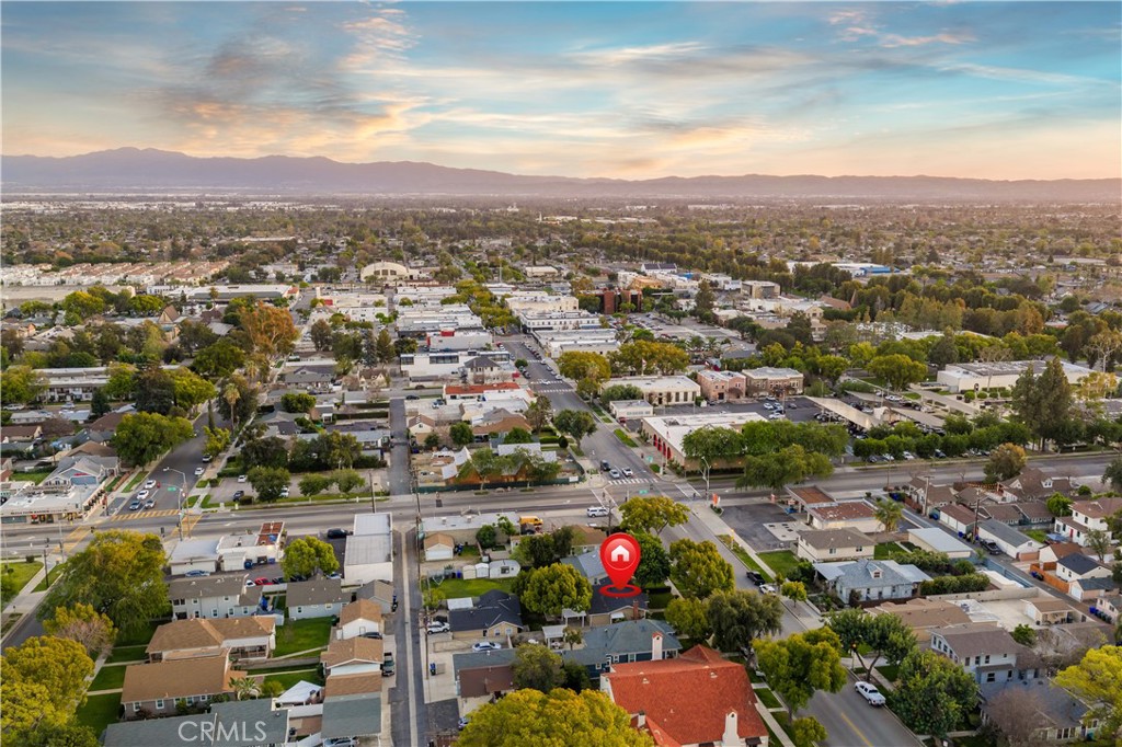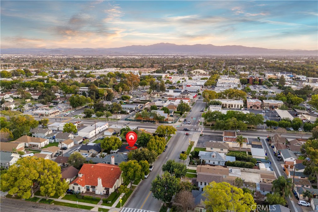 Located within walking distance to historic Downtown Upland and currently benefiting from the Mills Act, this two homes on one lot property at 548 N. 2nd Ave. and 548 1/2 N. 2nd Ave. features a front home with 3 bd, 2 ba, approx 1,488 sq ft plus a separate rear home/ADU with 1 bd, 1 ba, approx 683 sq ft, offering flexibility for rental income, guest house, or multi generational living. Each residence includes its own private garage, separate electric meter and gas, and individual laundry. The front Craftsman style home features a covered porch with stone accented columns, horizontal siding, and multi pane windows. The front yard includes mature shade trees, landscaped beds, lawn area, and a concrete walkway with a decorative garden arch framing the entry path. A long driveway along the side provides access to the rear of the property. The spacious living/family room offers large front facing windows, an original fireplace with wood mantel, and a wood paneled accent wall, plus a connected room ideal for a dining room/office. The layout flows into the kitchen and eating area creating a central living space. The kitchen features wood cabinetry, tile counters/backsplash, and a peninsula with a built in gas cooktop and vent hood. Laminate plank flooring in a parquet pattern extends through the kitchen and dining area. The dining space includes sliding glass doors to the side patio. Stainless steel refrigerator and freestanding gas range are included, with a nearby laundry room and storage. The hallway leads to the primary bedroom with hardwood flooring, corner windows, and an ensuite bath featuring an extended vanity, tile counter, built in storage, and a tub/shower with tiled surround. Two additional bedrooms offer closet storage and natural light. The hall bath includes a single sink vanity, walk-in tiled shower, and built in cabinetry. The backyard features mature trees, grass, and concrete patio areas with pergola covered seating space. The rear home has its own entrance to a living room with multiple windows and ceiling fan. A hallway with built in cabinetry leads to the kitchen featuring granite counters, white cabinetry, and stainless appliances, with a door opening to a private patio with pergola seating. The bedroom includes ceiling fan, large windows, and closet. The bathroom features a pedestal sink and tiled walk in shower. Two garages, one oversized garage for the front home and a standard size garage for the rear unit with laundry and storage.