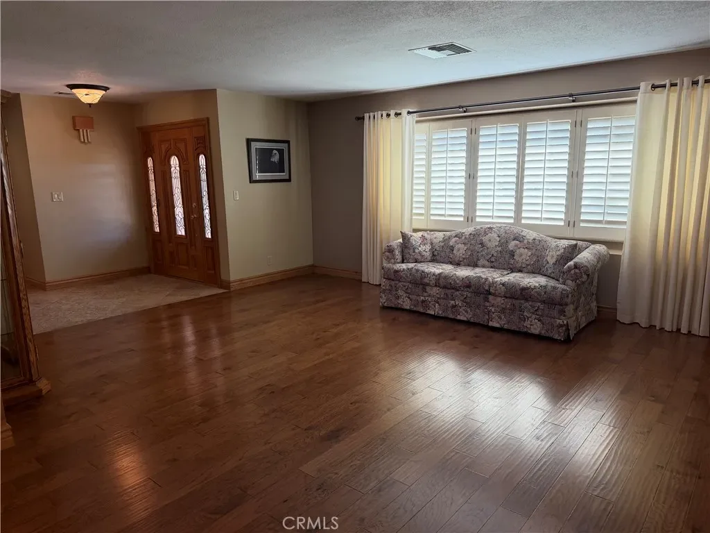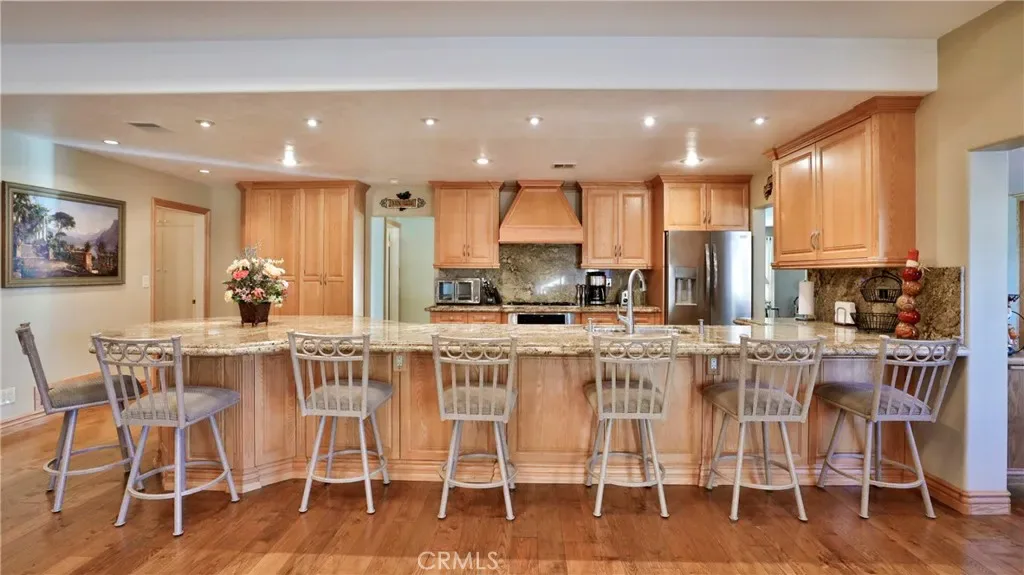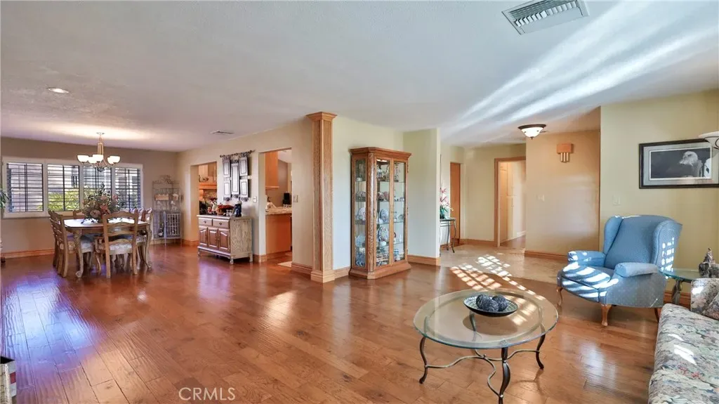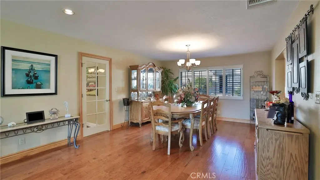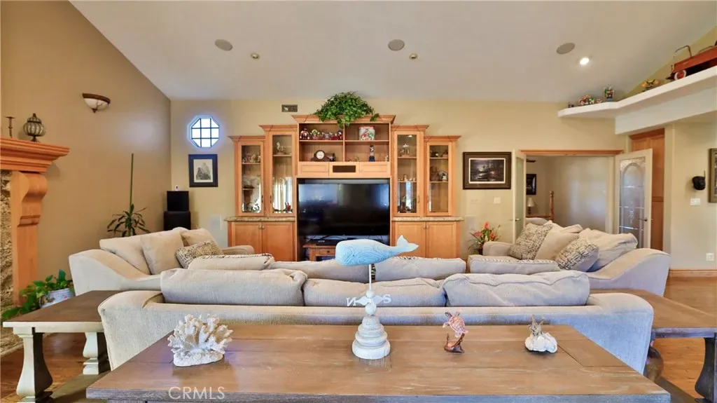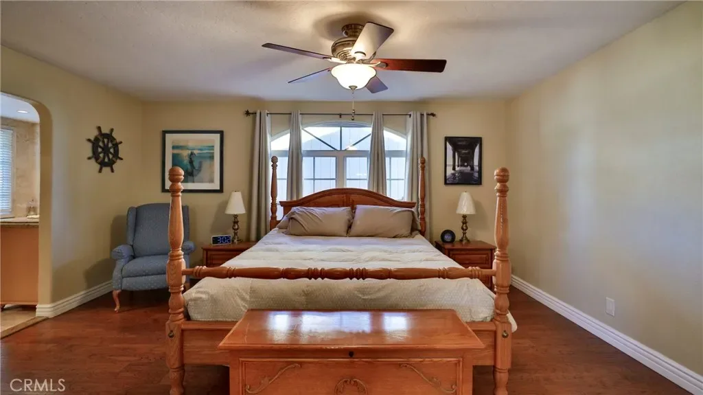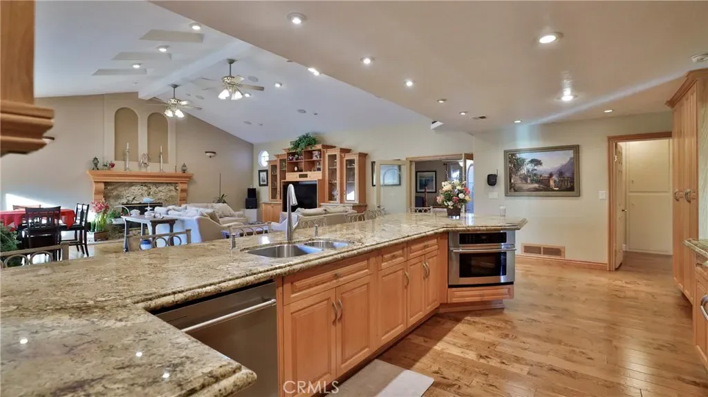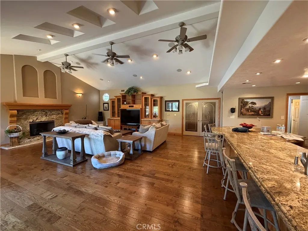 Additional living spaces include a comfortable living room, a dedicated dining room, and a large office, perfect for working from home or pursuing hobbies. Interior features include recessed lighting, plantation wood shutters, and ceiling fans throughout for year-round comfort. The primary bedroom boasts a walk-in closet with a pull-down ladder for easy access to additional attic storage. Enjoy indoor-outdoor living with a sliding door that opens to an inviting patio and sparkling pool. A hardwired alarm system ensures your peace of mind. Engineered hardwood floors enhance the living room, dining room, kitchen, and main bedroom with both beauty and durability. Two custom fireplaces add warmth and charm to the home’s living spaces. Garage and Exterior Features: A 28′ x 76′ detached garage at the rear of the property features four new garage doors, accommodating six or more cars, a hydraulic lift, and plenty of storage cabinets and shelving for organization. An additional RV pad includes an in-ground sewer line for convenient dumping. A custom-built detached shed (150 sq. ft.) with shelving provides even more space for tools or hobbies. The home and garage are topped with a durable tile roof and double paper for additional protection. 28 solar panels offer energy efficiency and cost savings. Copper plumbing was updated in 2002, and water lines from the meter to the house were replaced the same year. The block wall was rebuilt when the garage was constructed, ensuring privacy and security.