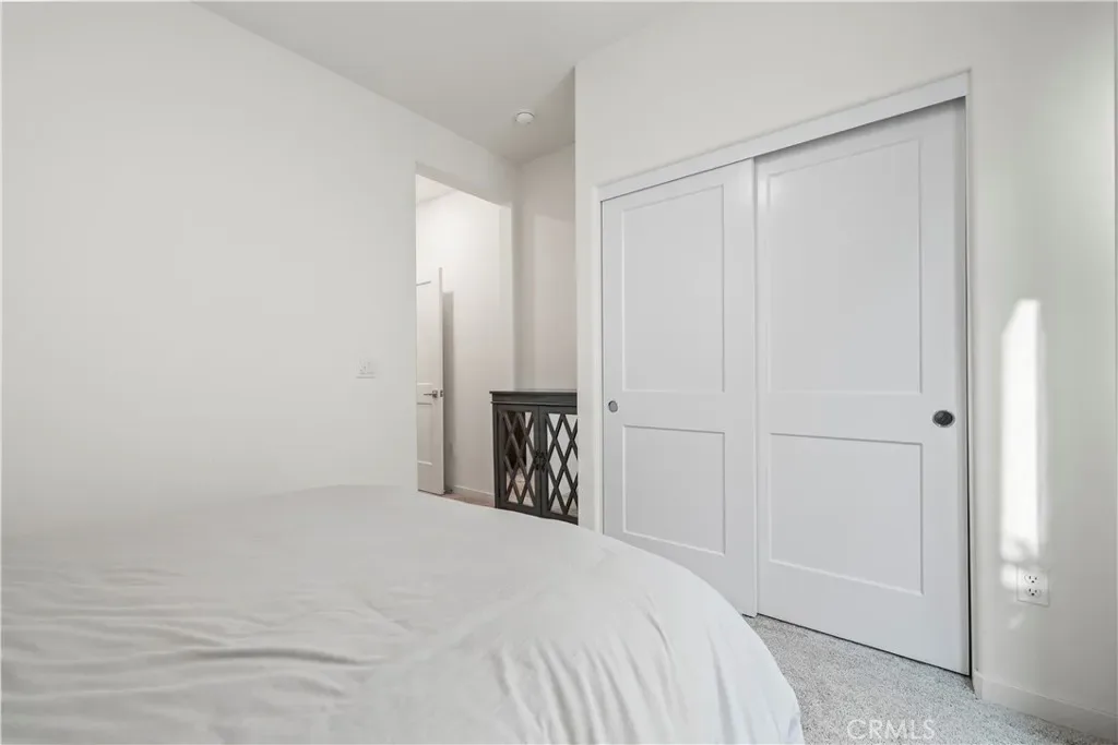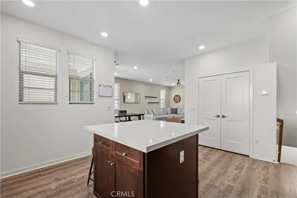 The second level serves as the main living area, showcasing an open-concept design. The kitchen features quartz countertops, stainless steel appliances, and a large center island that flows seamlessly into the dining and living areas. A private balcony extends the living space, bringing in natural light and fresh air. The home is also equipped with a comprehensive surveillance system that monitors the entire property, offering added security and peace of mind.On the third level, the primary suite includes a walk-in closet and a well-appointed ensuite bathroom. An additional bedroom and bathroom are nearby, along with a flexible loft space suitable for a home office, reading nook, or play area.