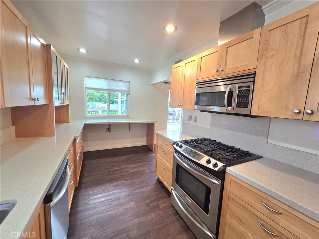 FRONT HOUSE – This beautiful home has 3-bedroom, 2 FULL bathrooms. Living room has fireplace and birch colored built in shelves and vinyl plank flooring. Home also has a den with built in shelves and bathroom, could be used as a big office or bedroom. Kitchen with birch color shaker style cabinets, quartz counter tops, stainless steel appliances and washer and dryer hookups. 3 ample bedrooms, all have carpet flooring. Huge FRONT YARD. Back yard with beautiful built-in deck, * INDIVIDUAL BONUS ROOM/ CASITA *. Small casita can be used as game room, storage or even an office (Room cannot be used as sleeping quarters). Backyard is perfect for summer BBQ’s. Central AC and Heating. Tenants pay 70% of all utilities including, water, trash, gas, electricity and WiFi. * Included in rent: Gardener. * Laundry: Washer and Dryer Hookups * Pet Policy: No Pets * Rent: $ 3,300 / Security Deposit: $ 3,300 / $45 per Adult Processing Fee – Cashier’s Check or Money Order only for Application Fee, Security Deposit and Processing Fee. NO smoking/vaping. One application per person living in property 18 and over. We require all original applications be delivered to our offices by prospective tenant. All tenants must carry renters insurance for the totality of their lease. Please be sure to read our entire application. Square footage and lot sizes are estimated. Minimum one year lease.
