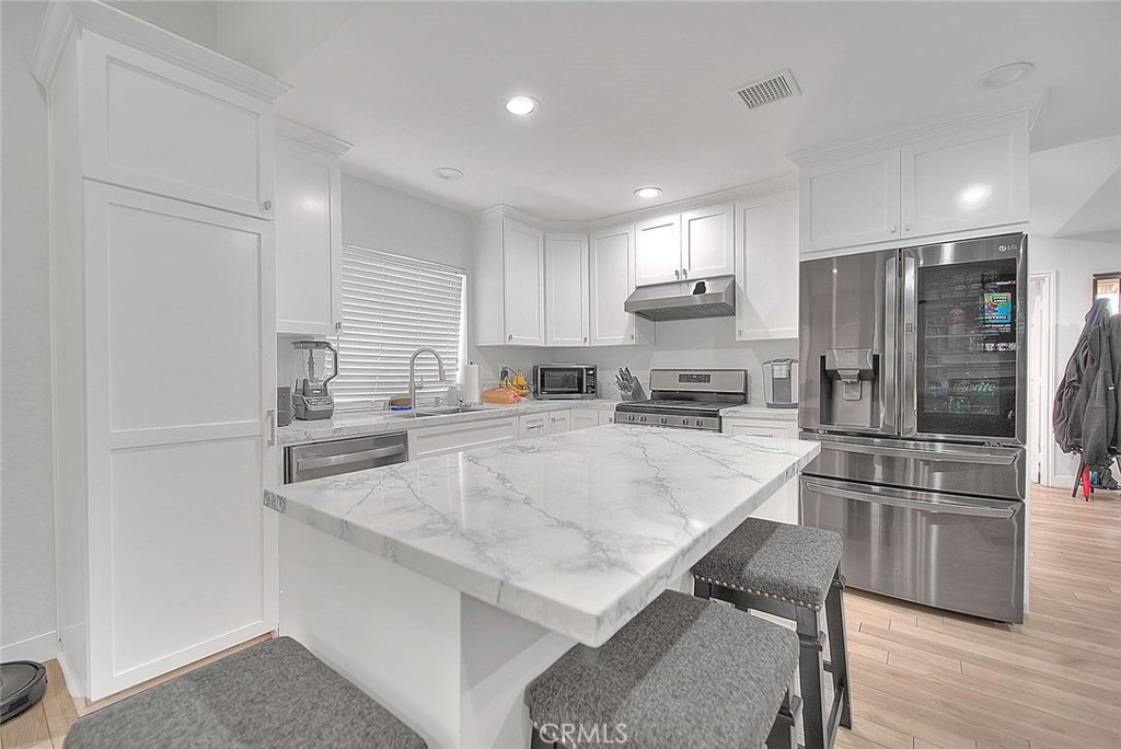 Welcome to this beautifully updated property in the highly desirable city of Upland, offering exceptional versatility and modern living with a newly built ADU. The front residence features 4 bedrooms and 2 bathrooms across approximately 1,754 sq ft, thoughtfully designed with comfort and style in mind. Enjoy an abundance of natural light and a functional open floor plan, complemented by water-resistant wood and tile flooring throughout. The spacious living room flows seamlessly into the dining area and gourmet kitchen, which showcases custom cabinetry, quartz countertops, a designer backsplash, and brand-new stainless steel appliances. The primary suite offers dual closets and a beautifully upgraded bathroom with a custom-tiled shower and glass enclosure. Additional upgrades include energy-efficient LED lighting, new windows, central HVAC, and a 3-car garage.