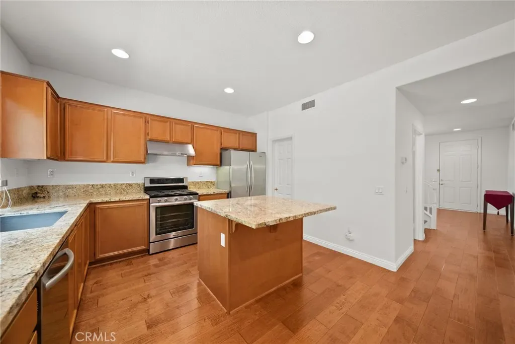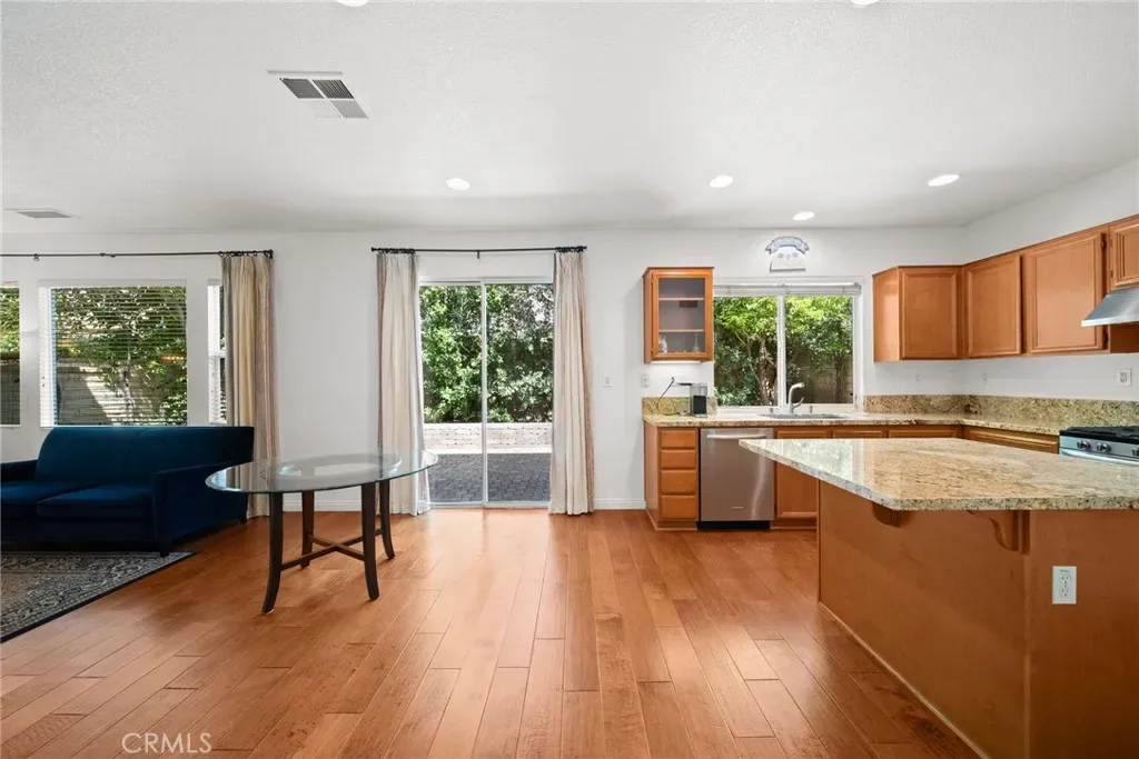 The heart of the home is the inviting kitchen, featuring granite countertops, ample cabinetry, a center island, and stainless steel appliances—all flowing effortlessly into the spacious living area. Gather around the cozy fireplace or enjoy indoor-outdoor living with direct access to the private backyard, creating the ideal space for relaxing or entertaining.