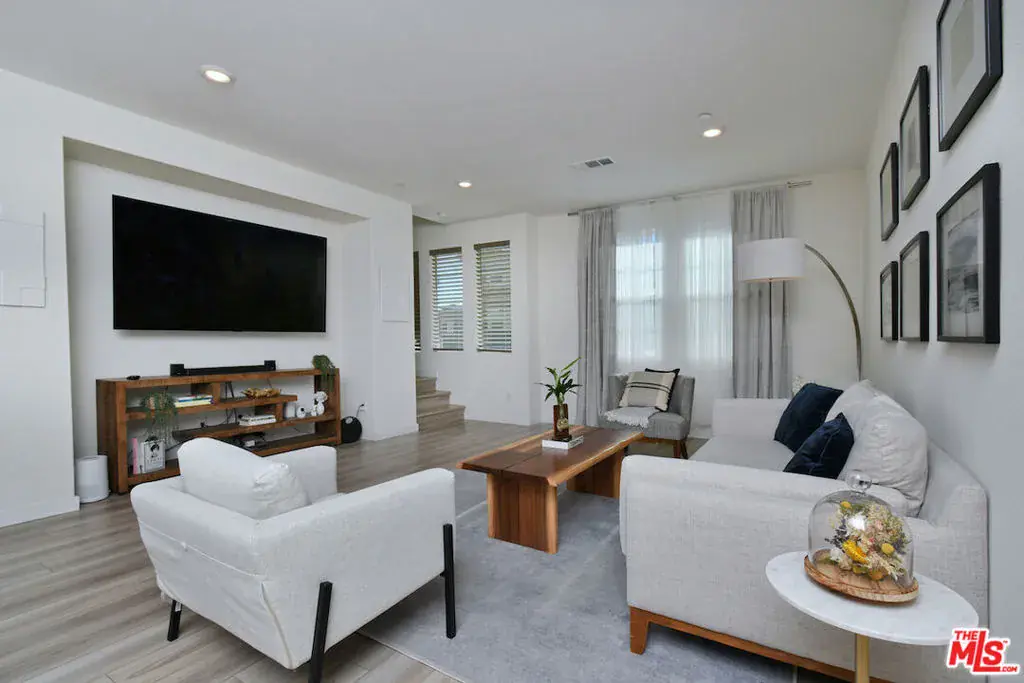 Modern new construction townhome with light-filled interiors and an open floor plan. This 3-bed, 4-bath home offers 1,880 sq. ft. of thoughtfully designed living space. First-level bedroom with private bath, ideal for guests or office. The second level features a spacious great room, dining area, and a modern kitchen with island, quartz countertops, shaker cabinets, large pantry, stainless steel appliances, and abundant storage. Third level includes two large primary suites, glass-enclosed shower, large laundry closet, and extra storage. Additional highlights: owned solar, two-car garage with EV charger, Tankless Water Heater, EcoBee smart thermostats, recessed lighting, waterproof plank flooring throughout, custom plantation shutters, designer curtains, and upgraded tile in all bathrooms. Tons of storage throughout and in garage. Move-in ready, energy efficient, and designed for today’s lifestyle. Community amenities include 3 pools, one shallow young child pool/cabanas/bathrooms/ping pong and barbecue/party area/clubhouse. Moments from HIGHLY RATED elementary, middle and high schools, Magic Mountain Theme Park, Fine & Casual Dining, Multiplex Movie Theatre, Family Entertainment Center, Old Town Newhall and lots more. VIDEO OF HOME AND COMMUNITY – CLICK VIRTUAL TOUR!