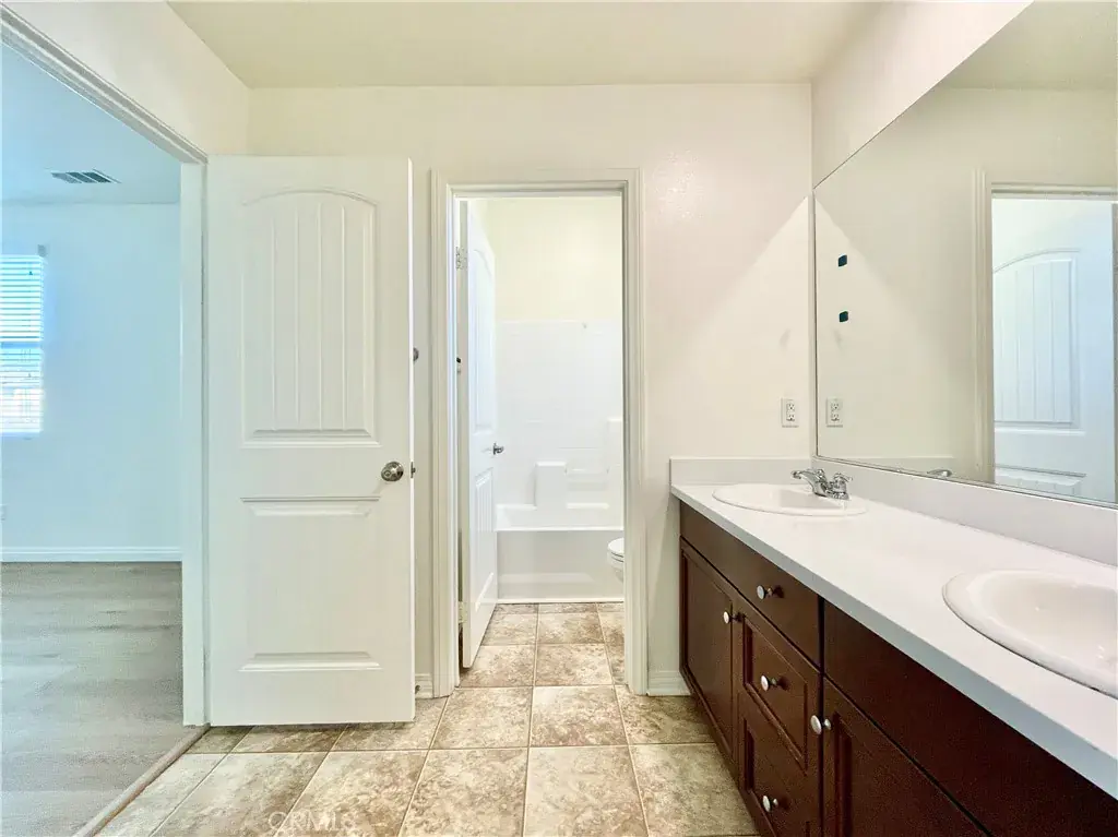 Upstairs, the serene primary suite boasts high ceilings, dual walk-in closets, and a spa-like ensuite bath with dual vanities, soaking tub, and separate shower. Two additional bedrooms share a Jack-and-Jill bathroom, complemented by a convenient upstairs laundry room. Additional highlights include a private patio and a two-car garage with direct access.