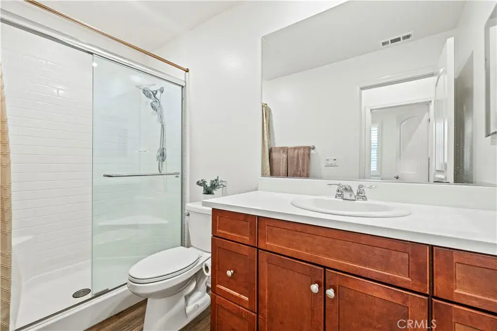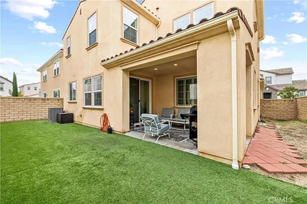 Welcome to this charming single-family home located in the prestigious West Creek Community of Valencia. This beautifully maintained residence boasts 4 bedrooms and 3 bathrooms, featuring luxurious details throughout. Upon entering, you’ll be greeted by an open floor plan with abundant natural light, creating an inviting atmosphere. The gourmet kitchen is a chef’s delight, complete with a large center island, granite countertops, custom cabinetry with ample storage, and stainless steel appliances. Water softener for the whole house and separate one for the kitchen. Plantation shutters throughout the whole house. Upgrades include double-pane windows throughout. The first floor includes a convenient bedroom with a full bath, perfect for guests. Vinyl flooring is present on the first floor and there is carpet on the stairs and 2nd floor. Recessed lighting enhances the first floor, and additional recessed lighting has been recently added to all upstairs bedrooms. All bathrooms feature quartz countertops, and each bedroom offers a walk-in closet. The primary bedroom is a true retreat, with an extra-large walk-in closet and an en-suite bathroom that includes dual vanities. This home has leased solar panels, resulting in minimal electrical bills. The spacious 2-car attached garage has been upgraded with an electric car connection. The backyard is perfect for entertaining, featuring a California living room with seamless indoor-outdoor flow and a relaxed modern aesthetic. Backyard has been upgraded with turf. Located in the highly sought-after West Creek Avanti neighborhood, this home is located within walking distance of award-winning schools (West Creek Elementary, Rio Norte Junior High, Valencia High). The community offers 3 heated pools and spas, a clubhouse, bike path, brand new playground, basketball court, BBQ area, and nearby shopping. Low HOA! Don’t miss the opportunity to make this your new home sweet home!