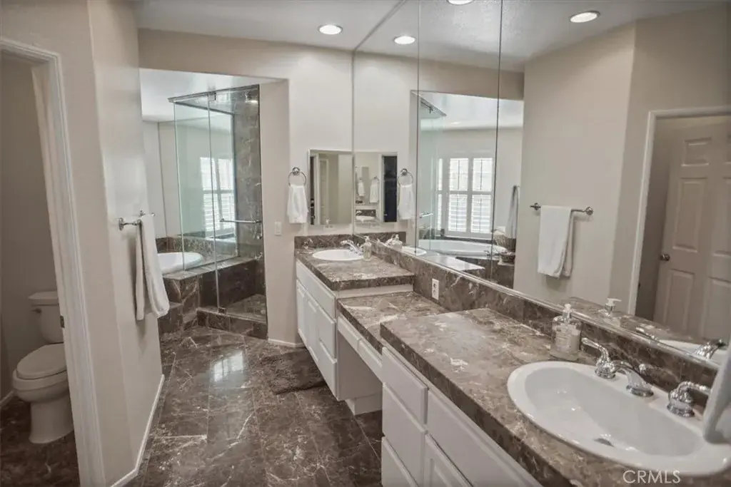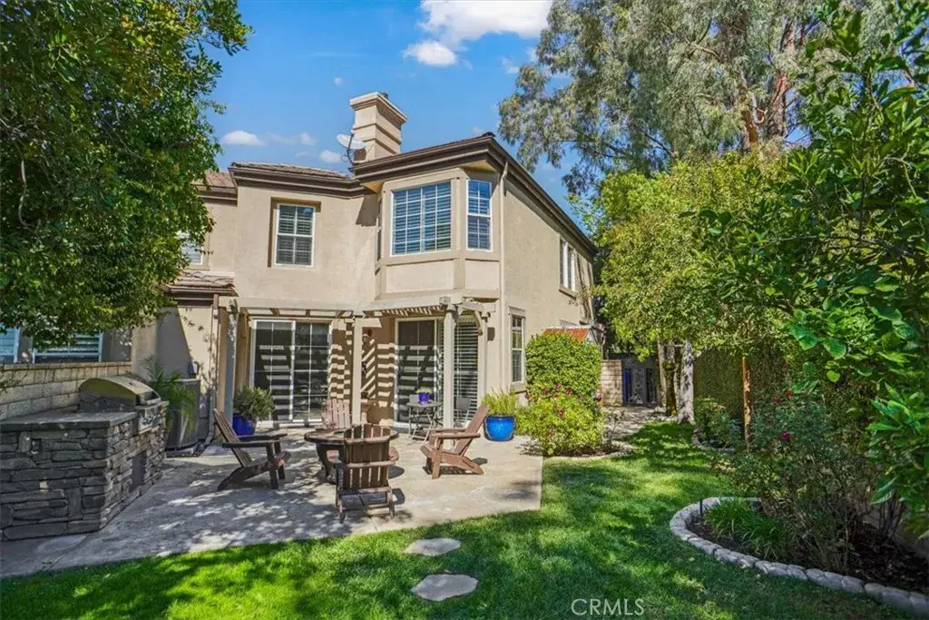 Beautiful Valencia ‘Avignon Gated Community” Executive Townhome. ** NO Mello Roos Taxes** . Location-Location-Location. Ideal for Empty Nesters, Vacation Home, or Snowbirds. This ideal townhome location includes a lushly landscaped rear patio and yard directly overlooking the 16th green at Valencia CC. This is the 3 bedroom floorplan however the 3rd bedroom option is/was configured as an open loft. This layout includes living, family and dining areas. Two sided fireplace in both the living & family rooms. Spacious kitchen featuring lots of granite counter and cabinet space. Counter seating bar for more casual meals. Expansive windows with plantation shutters throughout showcasing the rear patio yard, and golf course. Light bright throughout. The primary bedroom overlooks the golf course and features a two way fireplace connecting to the primary bathroom suite. Double door walk in closet adjacent to the primary bathroom suite. The 2nd upstairs bedroom has it’s own en-suite full bath. Inside Laundry room. Direct garage access. Garage features extensive storage cabinets. Relaxing outdoor lifestyle offers a covered patio, fountain, firepit, fruit trees and secluded golf course viewing area plus a side yard with a storage unit. Recently installed high efficiency Heat Pump FAU for central heating and cooling. Avignon community amenities include the recreation center with pool, Spa, lounge & firepit area plus lushly landscaped grounds with relaxing seating areas for pleasant strolls without leaving the Avignon community. Short stroll to the Valencia Town Center featuring shopping, restaurants, fitness center, mall and more.