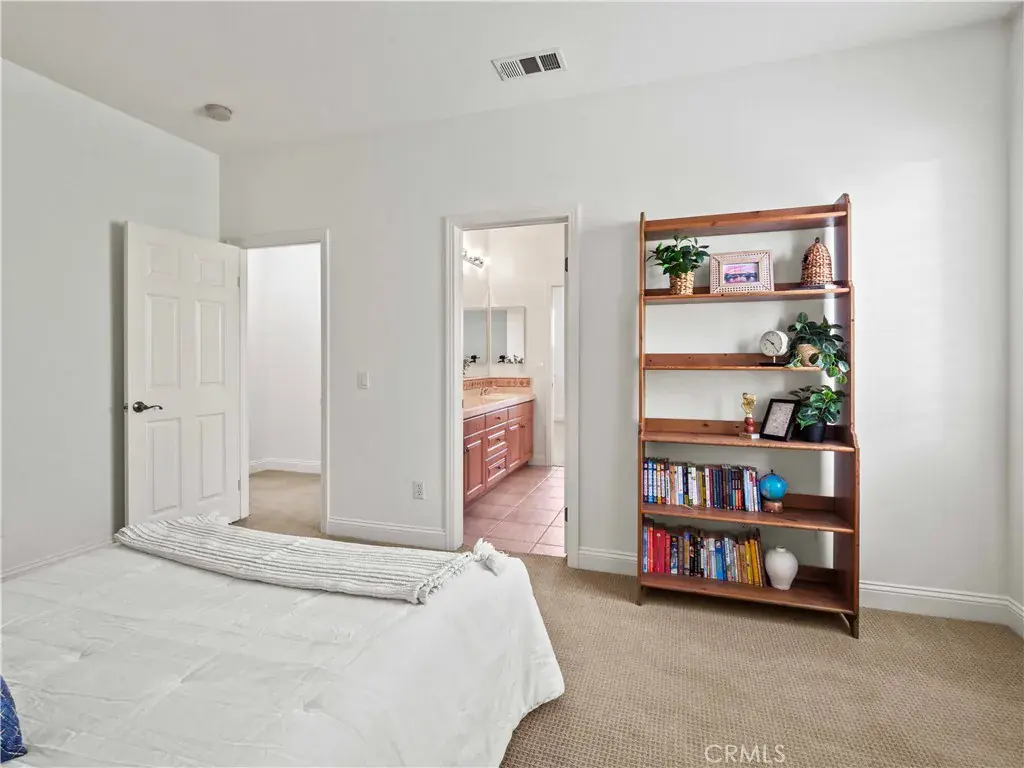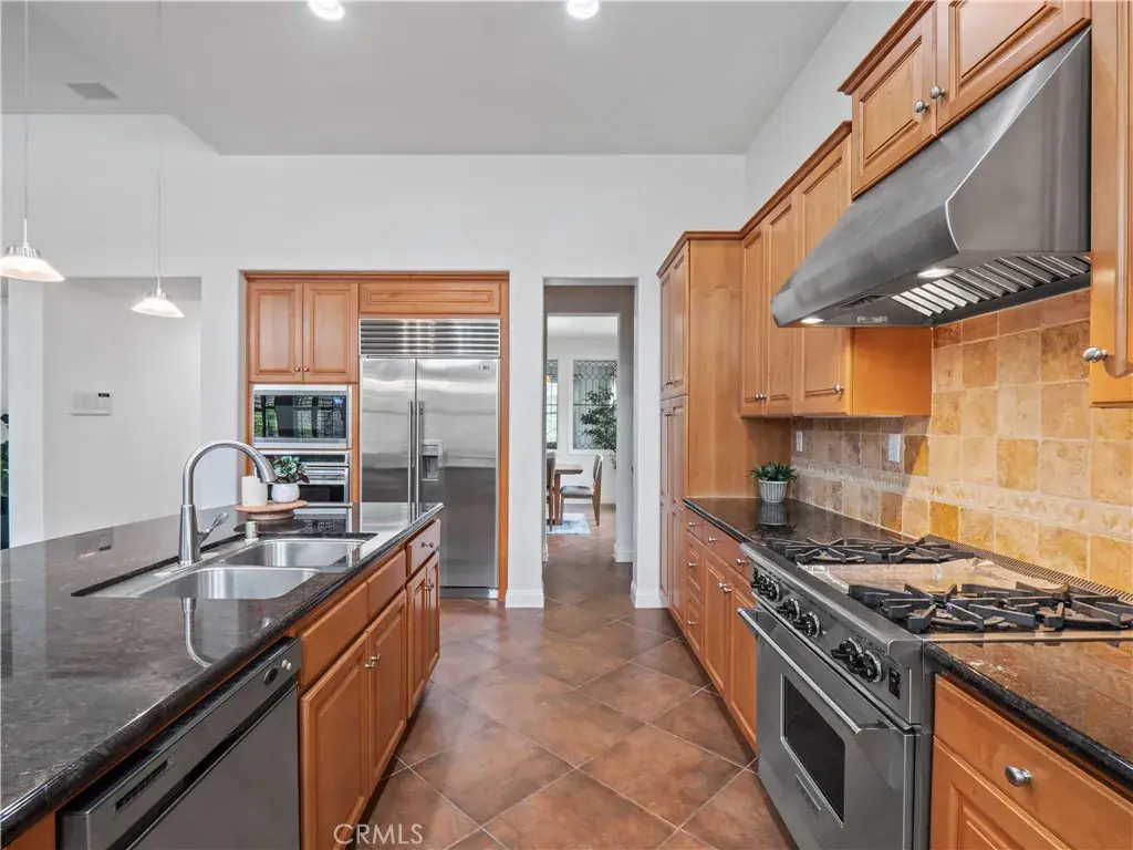Breathtaking Gated Westridge Home with 4 Bedrooms, 2.5 Baths, Loft that is currently a billiards room, Downstairs Luxurious Primary Suite, a 3-Car Garage, and No Mello-Roos Taxes! This beautifully maintained home features exceptional curb appeal, an inviting front porch, and a spacious, light-filled floor plan. Step into the formal living room adorned with a charming stone fireplace and decorative glass accents, flowing into a generous formal dining area with built-in storage and a butler’s pantry. The family room boasts soaring windows and opens to the chef’s center island kitchen, complete with abundant counter space, built-in Sub-Zero refrigerator, upgraded commercial-grade range, stainless steel appliances, and ample cabinetry. The luxurious primary suite offers a spa-inspired en-suite bathroom with dual vanities, a large jetted soaking tub, an upgraded glass-enclosed walk-in shower, and a massive walk-in closet with custom organizers. A guest powder room and a well-equipped laundry room with utility sink and additional storage complete the first level. Upstairs, the grand staircase leads to a spacious loft currently used as a billiard’s room and three additional bedrooms, two share a well-appointed Jack-and-Jill bathroom with dual sinks. Step outside to enjoy the lushly landscaped yard, featuring a large grassy area, covered pergola patio, and built-in cooking station which is perfect for entertaining. Located in a gated community of luxurious homes, residents enjoy access to resort-style amenities including a clubhouse, two swimming pools, tennis courts, sports courts and in close proximity to award-winning schools (Oak Hills Elementary, Rancho Pico Junior High, and West Ranch High School). Centrally located minutes from freeway, shopping and restaurants. Don’t miss the opportunity to own this exceptional home in one of Westridge’s most desirable communities!