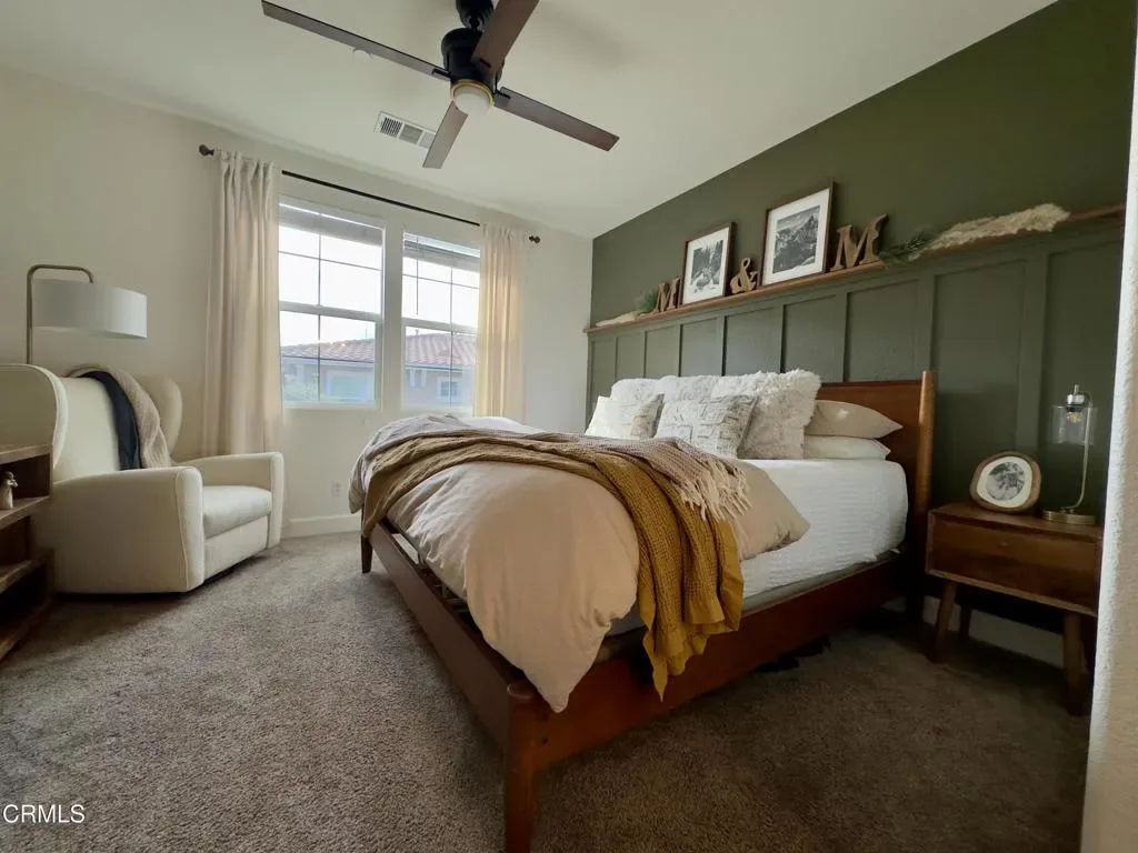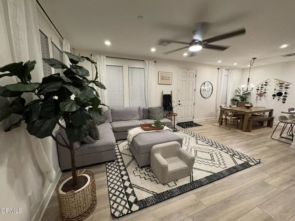 Make this beautifully maintained 3-bedroom, 2.5-bath condo–offering 1,420 square feet–your new home with NO MELLO ROOS. Thoughtfully updated throughout, the unit features a new air conditioning system (2025), new water heater (2025), a remodeled kitchen, Nest thermostat, updated lighting fixtures, as well as ceiling and bathroom fans.Step inside to an inviting open floor plan showcasing recessed lighting, laminate flooring, and a stunning custom-built entertainment center that immediately draws your eye. This standout feature includes a sleek mounted TV area framed by a modern geometric accent wall, a built-in electric fireplace, and stylish floating shelves–perfect for displaying dA(c)cor, photos, or additional storage while adding warmth and ambiance to the space.The adjacent dining area offers plenty of room for a full-size table, while the remodeled kitchen boasts granite countertops, a tile backsplash, stainless steel appliances, and a countertop bar for additional seating–ideal for entertaining. A nearby storage closet has been upgraded with abundant shelving, providing excellent pantry overflow and organization.The main-level bathroom features a vanity and bold black-and-white linen wallpaper, adding a touch of personality. You’ll also find a convenient laundry room with storage cabinets and extra shelving.Upstairs, all three bedrooms provide comfortable living space. The spacious primary suite includes a stylish accent wall with a custom maple wood shelf–perfect for showcasing art or personal touches. The en-suite bathroom offers a soaking tub, separate shower, dual-sink vanity, and a toilet with bidet. Two additional bedrooms share a full bathroom; each includes mirrored closet doors, and one features an added accent wall.Completing the home is an oversized two-car garage with ample room for vehicles plus additional space currently used as a gym. Two white storage cabinets in the garage are also included. Owner and listing agent are related.