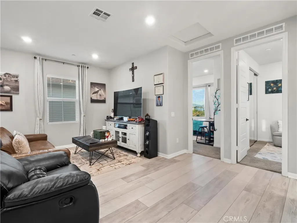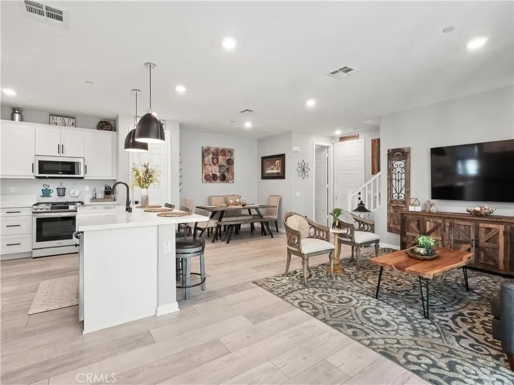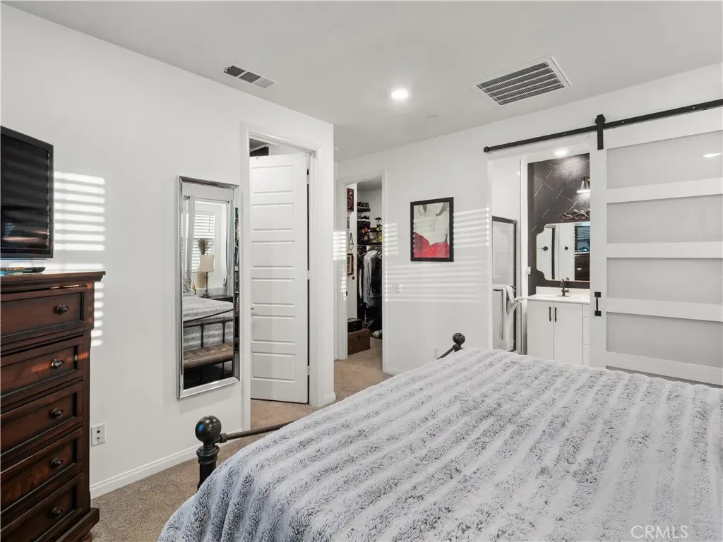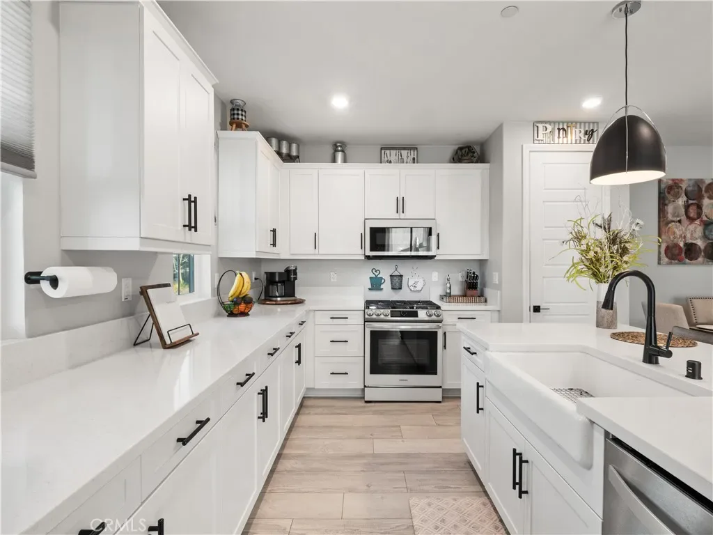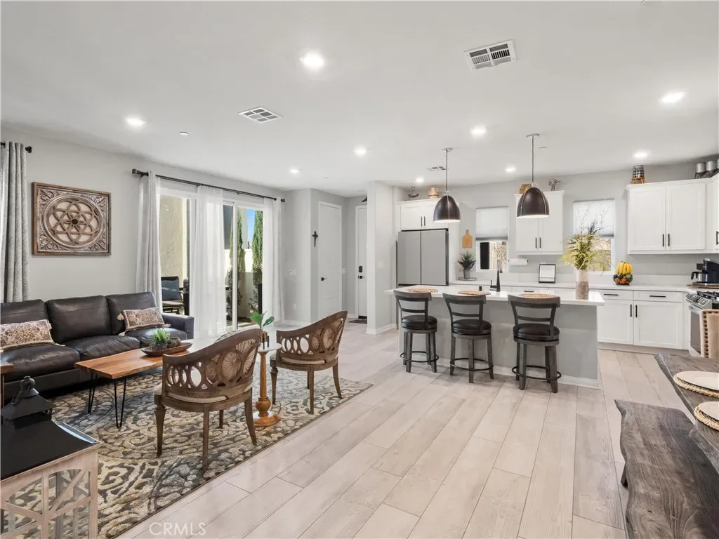 Welcome to this desirable north-facing home in the sought-after Valencia FivePoint community, featuring owned solar and a thoughtfully designed open-concept layout. The main level offers a stunning open-rail staircase leading to a spacious, light-filled loft, creating an airy and inviting space. The gourmet center-island kitchen is beautifully designed with quartz countertops, stainless steel appliances, soft-close cabinetry, upgraded hardware, a generous size pantry, and ample storage. A stylish designer powder room adds convenience for guests. Upstairs, the private primary suite features dual walk-in closets and a trendy barn door opening to the spa inspired ensuite with dual-sink vanity and a stunning glass-enclosed walk-in shower. Secondary bedrooms include mirrored wardrobe doors, and the oversized laundry room is highlighted with a tile backsplash. Additional highlights include a two-car attached garage with overhead storage and a prime location just minutes from the 5 Freeway, Highway 126, Six Flags Magic Mountain, and all that Valencia has to offer. FivePoint residents enjoy access to weekly farmers markets, resort-style pools with cabanas, gas barbecues, children’s play areas, multiple parks, community gardens, scenic walking and golf cart trails, and breathtaking mountain views. Don’t miss this exceptional opportunity to call this beautiful home your own!