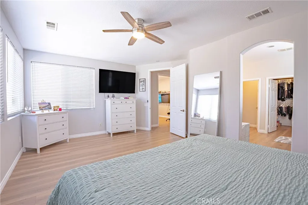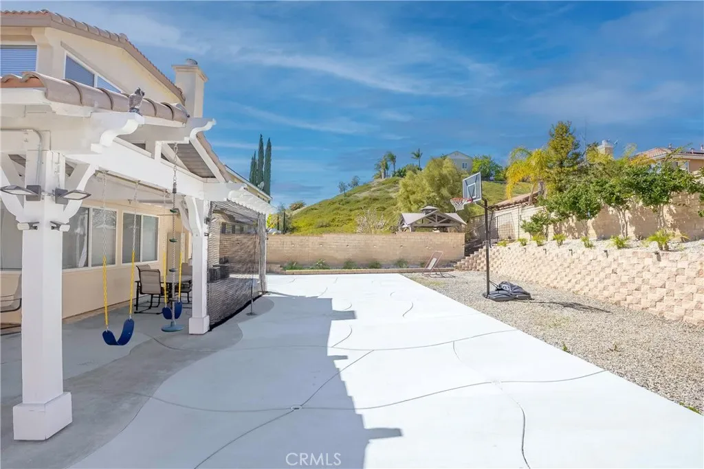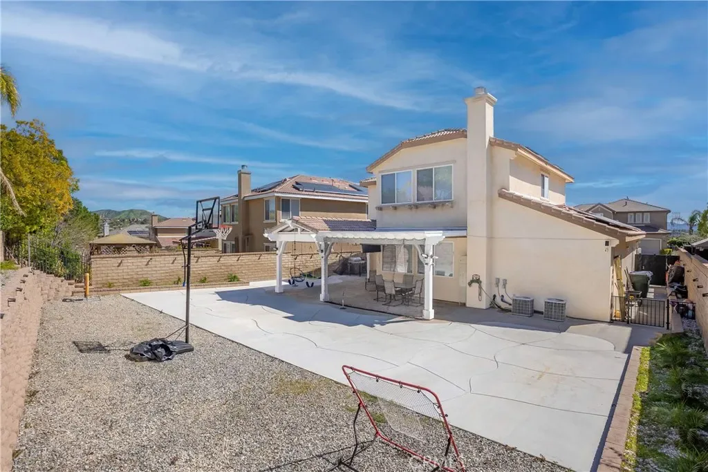 Welcome to this beautiful Tesoro del Valle home. Open concept floorplan, with lot of natural light, and a spacious kitchen with a lot of storage space will satisfy all your entertaining dreams. KitchenAid appliances, soft close drawers/cabinets, a walk-in pantry and adjacent updated butler’s pantry are just some of the features you’ll enjoy. First floor offers recess lighting with energy efficient LED lightbulbs, a flex room off the kitchen that can be used as a large office or another bedroom, and a den/bedroom and half bath, and a small gym adjacent to the garage . The upstairs bedrooms all feature large closets with built-ins, and there is a loft perfect for a play room or even another bedroom. Accessible from the dining room, enter a large backyard featuring a wonderful built in patio-cover with fans and electric heaters. SOLAR PANELS ARE FULLY PAID OFF and are able to generate electricity for the entire house! Additionally, a Tesla car charger has been installed in the garage, as well as a tankless water heater. The property is equipped with a smart sprinkler system and dual Nest thermostats allowing for optimal temperature control and energy efficiency throughout the home, as well as two laundry units upstairs and downstairs. The garage provides plenty of space for vehicles and additional storage needs, including an accessible attic. Tesoro del Valle Master HOA delivers beautiful amenities including 2 pools, a clubhouse, tennis courts, a playground & a beautiful duck pond, a gym and volleyball court. This home is also walking distance to a top rated Elementary & Junior High School. Do not miss this modern home that combines sustainability and comfort!