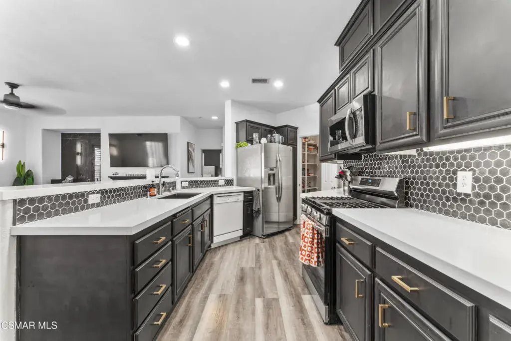 Assumable loan at 3.55%. Beautifully upgraded two-bedroom condo with attached two-car garage, ideally positioned at the end of the complex for added privacy.This home has been thoughtfully renovated throughout. Brand-new luxury vinyl plank flooring and fresh interior paint create a clean, modern feel from the moment you enter. The open-concept great room features a spacious living area with fireplace, flowing effortlessly into the dining space with direct access to a large outdoor patio — ideal for entertaining or relaxing outdoors.The remodeled kitchen is a standout, featuring quartz countertops, a new sink and faucet, updated appliances (2022), new dishwasher and garbage disposal, freshly painted cabinetry, recessed lighting, abundant storage, and a separate pantry. A breakfast bar provides additional seating and casual dining space.The primary suite offers a comfortable sitting area, a custom-designed closet system, and a beautifully remodeled en-suite bath with Italian tile, a herringbone-pattern floor, and a stunning upgraded shower. The secondary bedroom is generously sized with ample closet space and access to an oversized balcony. The second bathroom also features newly remodeled shower tile.Additional upgrades include: AC unit replaced in 2024 with recent annual HVAC maintenance completed Washer and dryer replaced in 2022 New stairway trim and finishing details Plantation shutters throughout New ceiling fans Resideo smart thermostat systemThe attached two-car garage offers direct access, a ceiling-mounted storage system, and a brand-new garage door (2025).Enjoy all the amenities of the desirable Alta Vista community, including a swimming pool, park, and picnic areas — all conveniently located near freeway access, award-winning schools, shopping, and dining.