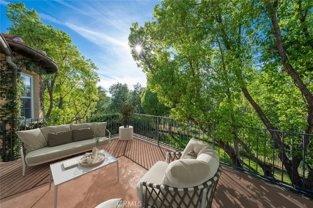 Exquisite Entertainer’s Home located on one of the best Cul-de-Sac streets in the Prestigious Guard Gated Woodlands Community! As you enter this Magnificent home you are in awe with the Architectural Style and Designer’s Touch throughout! This Sophisticated Well-appointed home exemplifies impeccable taste. Luxury Living at its finest! As you enter this Incredible home, you are drawn to Custom Beveled Windows and French Doors leading you to the Courtyard and Entertainer’s Backyard! This Spectacular home Boasts 5 Large Bedrooms (one downstairs), Approx. 3,600 Sq. Ft, Tech Center, Large Primary Suite with Balcony, Large Living Room, Formal Dining Room, Family Room, Loft, Large Upgraded Gourmet Kitchen with High-End Appliances, Quartz Counter Tops & Gorgeous Backsplash & Breakfast Nook overlooking the Breathtaking Backyard. Perfect for any Chef! Large Family Room with Upgraded Stone Hearth Romantic Fireplace. Formal Dining Area with French Doors to the Lush Private Courtyard with Serene Water Feature. As you meander upstairs you are drawn to the Large Loft, Large Primary Suite with Large Balcony and Stunning Mountain Views. Large Luxurious Upgraded Primary Bathroom with Dual Sinks with Walk-in Shower & Separate Tub. Feels like you are in Bellagio. Two Walk-in Closets with Built-ins. Four Large Bedrooms (one w/En-suite & one with deck). Large Laundry Room with Sink and plenty of storage. Features include French Doors, Crown Molding, Custom Beveled Windows, Ceiling Fans, Recessed Lighting, Plantation Shutters, Upgraded Fireplace, Laundry Room & Professionally Painted. Lush Entertainer’s Park-like Backyard with Covered Patio, Custom BBQ with Enchanting Mountain Views. Professionally Hardscaped & Landscaped. Fabulous Large Private Backyard and Courtyard for Entertaining! 2 Car Garage. Woodlands Amenities include, Guard Gated Entry, Recreation Center, Jr. Olympic Pool, Spa, Outdoor Fireplace, BBQs, Tennis Courts, Basketball Courts, Tot Lot and Walking Trails. Close to award winning schools, shopping and easy freeway access. No Mello Roos. Some photos have been virtually staged.