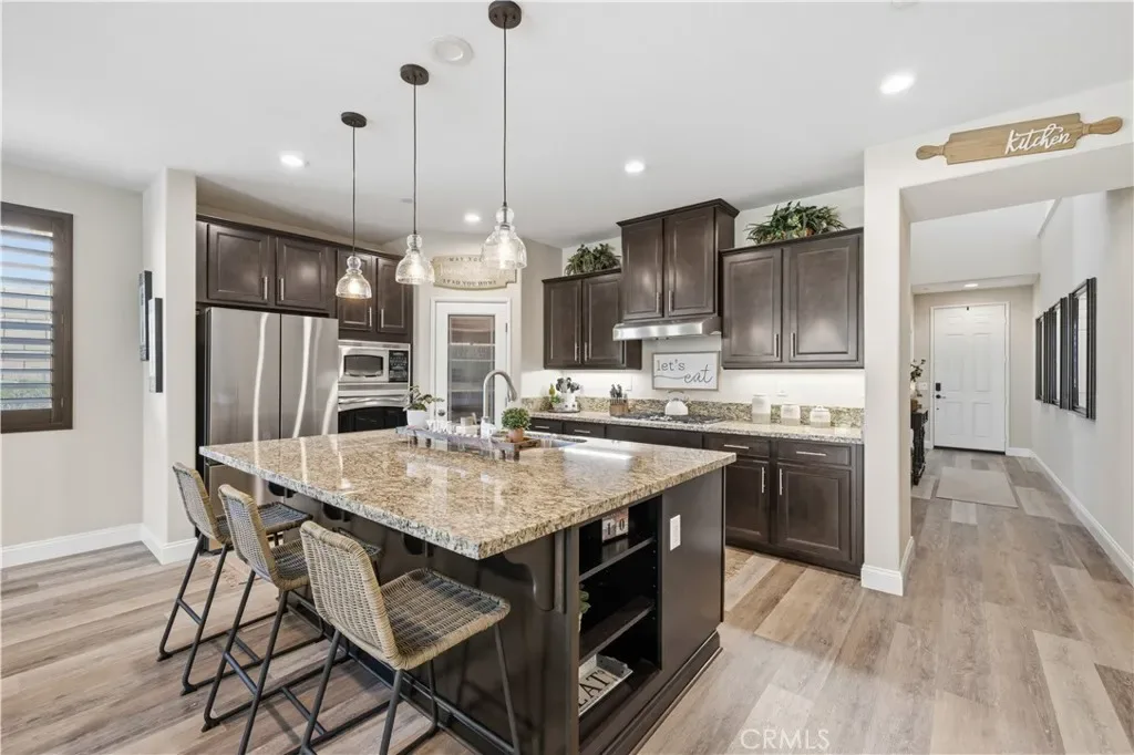 Rare MAIN FLOOR primary suite plus additional downstairs bedroom and full bath in Valencia’s highly sought-after gated West Hills community, perfectly positioned on a prime corner lot! This beautifully maintained home offers a highly desirable and versatile floorplan designed for modern living. The light-filled interior features an open-concept layout with spacious living and dining areas that flow seamlessly into the kitchen, complete with granite countertops, stainless steel appliances, rich cabinetry, and a large center island ideal for gathering and entertaining. The downstairs primary suite provides a private retreat with direct access to the backyard, while the additional downstairs bedroom and full bathroom offer the perfect setup for guests, extended family, or a home office. Upstairs you’ll find two additional bedrooms and a spacious loft, ideal for a second living area, media room, playroom, or workspace. The private backyard offers a great setting for relaxing or entertaining with patio space and lush lawn areas. Located within the highly desirable gated West Hills community, residents enjoy resort-style amenities including pools, parks, scenic paseos, and access to top-rated schools, all just minutes from shopping, dining, and freeway access. An exceptional opportunity to own a beautifully appointed home in one of Valencia’s premier gated communities!