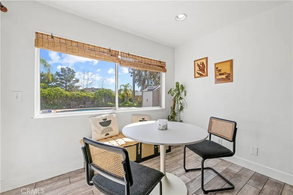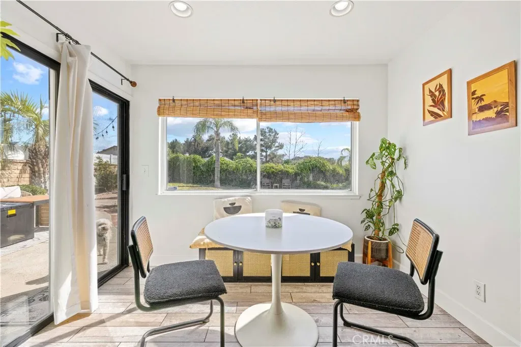 The entire first floor flows together in an open, airy layout. The expanded chef’s kitchen is a showpiece with a 6-burner range, custom concrete counters with a pearl-shine overlay, soft-close shaker cabinets, and a cozy breakfast nook. From the back of the house you get panoramic views of a private yard and sparkling pool, with no rear neighbors for added peace and privacy.