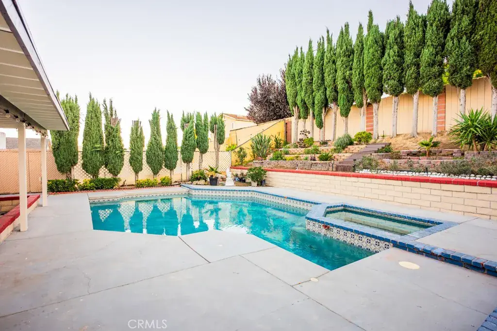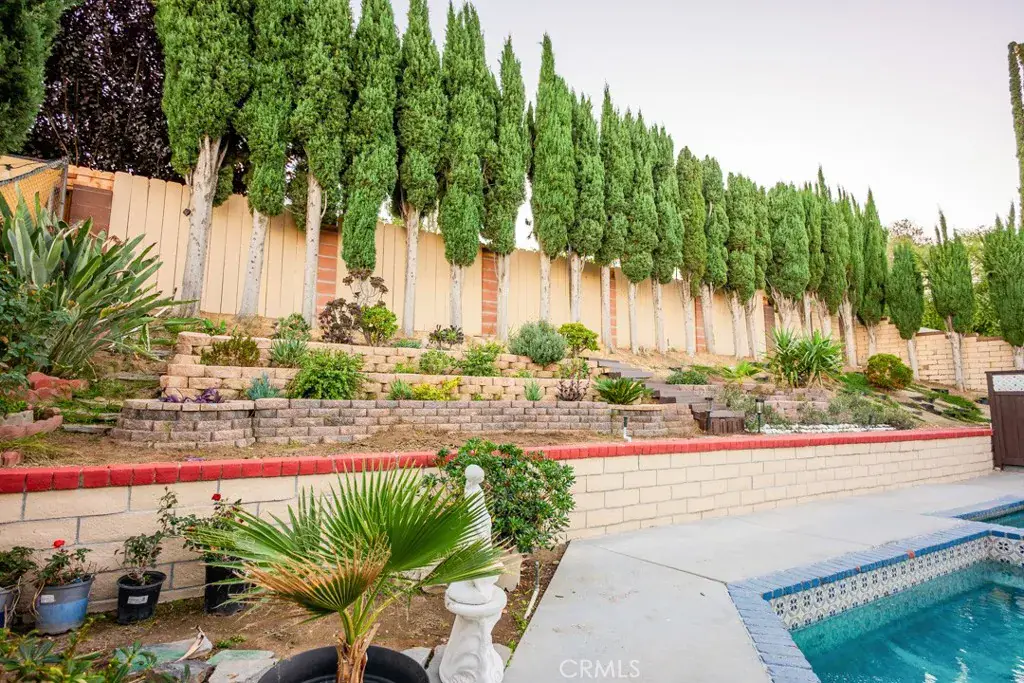 HURRY UP BEFORE IT’S GONE! NEW HVAC SYSTEM!! Downstairs Bedroom and bathroom two story home in the highly desired Monteverde tract of Valencia, a rare gem in prime location! This beautifully upgraded residence sits on a private elevated lot surrounded by mature cypress trees, offering full backyard privacy and a peaceful atmosphere. Inside, you’ll find a spacious living room with a classic brick fireplace and large diamond-paned windows that fill the space with natural light. The upgraded kitchen features granite countertops, stainless-steel appliances, rich cabinetry, and a charming dining area overlooking your sparkling backyard oasis. Upstairs, the primary suite offers dual French door to a private balcony, a walk-in closet, and a dual-sink vanity with a standing shower. Additional bedrooms are spacious and bright, with plenty of flexibility for family or guests. The entertainer’s backyard is a true escape — featuring a sparkling pool and spa. The front garden, elevated above street level, creates a sense of tranquility and total privacy from the moment you arrive. With a new HVAC system, no HOA or Mello Roos, and proximity to top schools, parks, and restaurants, this home offers the best of Valencia living. Make this your new home before it’s gone!