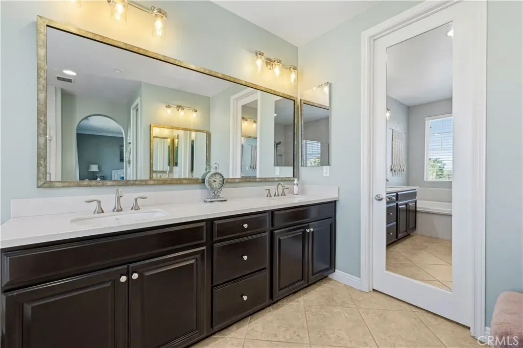 Gated West Hills view home with a highly desirable *NextGen suite* offering privacy, flexibility, and modern living. Located on a quiet cul-de-sac with solar and a 3-car garage, this spacious home offers approximately 3,600 sq ft with 6 bedrooms and 5.5 bathrooms. The NextGen suite functions as a private “home within a home,” complete with its own separate entrance, living room, kitchenette, laundry, and private bedroom with dual sinks and a glass-enclosed shower—perfect for multi-generational living, guests, college students, or rental potential.? The main home features an open and inviting floor plan with a dramatic formal dining area with soaring ceilings, a downstairs bedroom with en-suite bath and walk-in closet, and a beautiful kitchen with a large center island, granite countertops, custom backsplash, stainless steel appliances, and abundant storage. The kitchen opens to the family room featuring a custom stone fireplace and incredible valley views.? Upstairs offers a versatile loft space, laundry room with utility sink, and a spacious primary suite with private balcony, walk-in closet, dual vanities, soaking tub, and glass-enclosed shower. Secondary bedrooms are generously sized with a dual-vanity bathroom.? Enjoy the beautiful views from the balcony or unwind in the swim spa. HOA amenities include three pools and a clubhouse, conveniently located near the 5 freeway, West Creek Elementary, shopping, dining, and more.