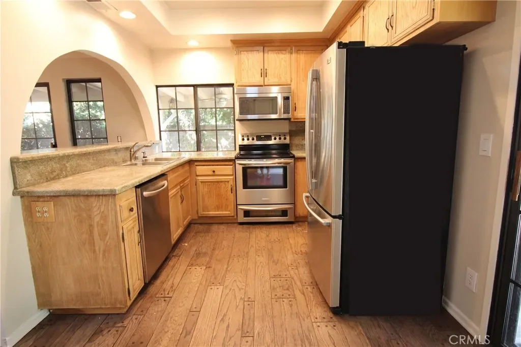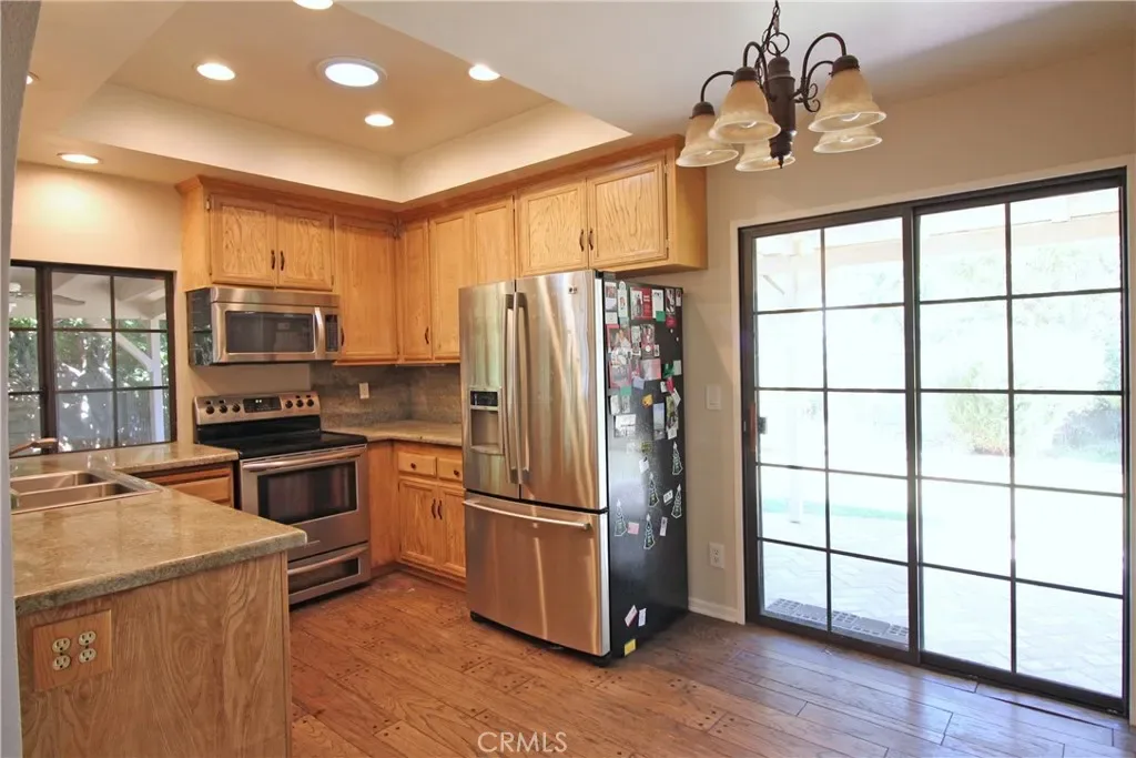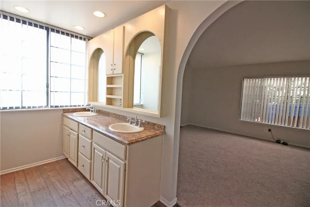 Tucked away on a quiet cul-de-sac, this beautifully maintained Spanish-style single-story home offers 4 bedrooms and 2 bathrooms, along with a private, lush backyard retreat. From the moment you enter, the home welcomes you with warmth and charm, highlighted by an open-concept layout and a dual-sided fireplace connecting the living and dining areas. The versatile floor plan includes a front bedroom with dual access from both the living room and hallway—ideal for a home office or guest space. All bedrooms feature generous closet space and natural light, with one bedroom offering sliding door access to a tranquil atrium. The primary suite includes an adjacent bathroom for added comfort and convenience. The spacious laundry room is equipped with abundant storage and a utility sink (washer and dryer not included). Step outside to enjoy a beautifully landscaped backyard and inviting patio area, perfect for relaxing or entertaining. Residents also enjoy access to community amenities, including a pool, spa, and clubhouse. Available June 1, 2026. Schedule your private showing today—this home will not last!