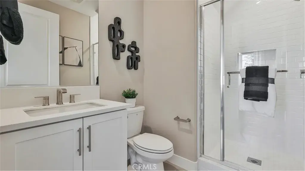 Separate from the main living areas, the home also includes an independent ensuite space with its own private stairwell. This area features a full bedroom, full bathroom, and stackable washer—providing a self-contained, flexible living option.