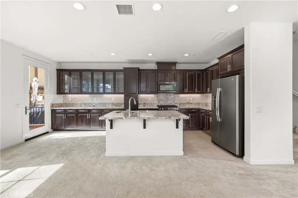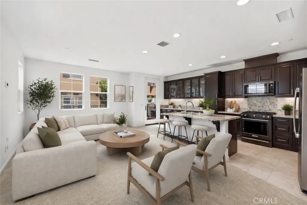 STUNNING VALENCIA HOME!! 3 bedroom, 2.5 bathroom plus loft end unit townhome with neighbors only on one side, located in the desirable West Creek community of Valencia. This highly sought-after floorplan features an open concept design with abundant natural light throughout. The spacious great room provide an ideal setting for entertaining and flows seamlessly into the modern kitchen, featuring a large center island, granite countertops, stylish backsplash, mocha cabinetry, stainless steel appliances all included. A builder upgrade extended the kitchen with additional glass front cabinetry providing enhanced storage and an elevated design touch. The home is thoughtfully upgraded with smart home technology, a tankless water heater, recessed lighting, a whole house fan, and ceiling fan/light fixtures in all bedrooms for enhanced comfort and energy efficiency. Additional features include a 2-car attached garage with direct access, a convenient downstairs powder room, and indoor-outdoor living with access to a private yard. Upstairs, the primary suite includes an oversized walk-in closet and a spacious ensuite bathroom with dual sink quartz countertops. A versatile loft area provides flexibility for use as an office, gym, or secondary living space. Two additional bedrooms share a dual-sink hallway bathroom, and the upstairs laundry room includes washer and dryer along with extra storage. The property is ideally situated within the community and includes access to HOA amenities such as pools, recreation facilities, parks, basketball courts, and paseo trails. Conveniently located near West Creek Academy, Rio Norte Junior High School, and Valencia High School, as well as shopping, dining, and convenient freeway access. Don’t miss out – schedule your visit today!
