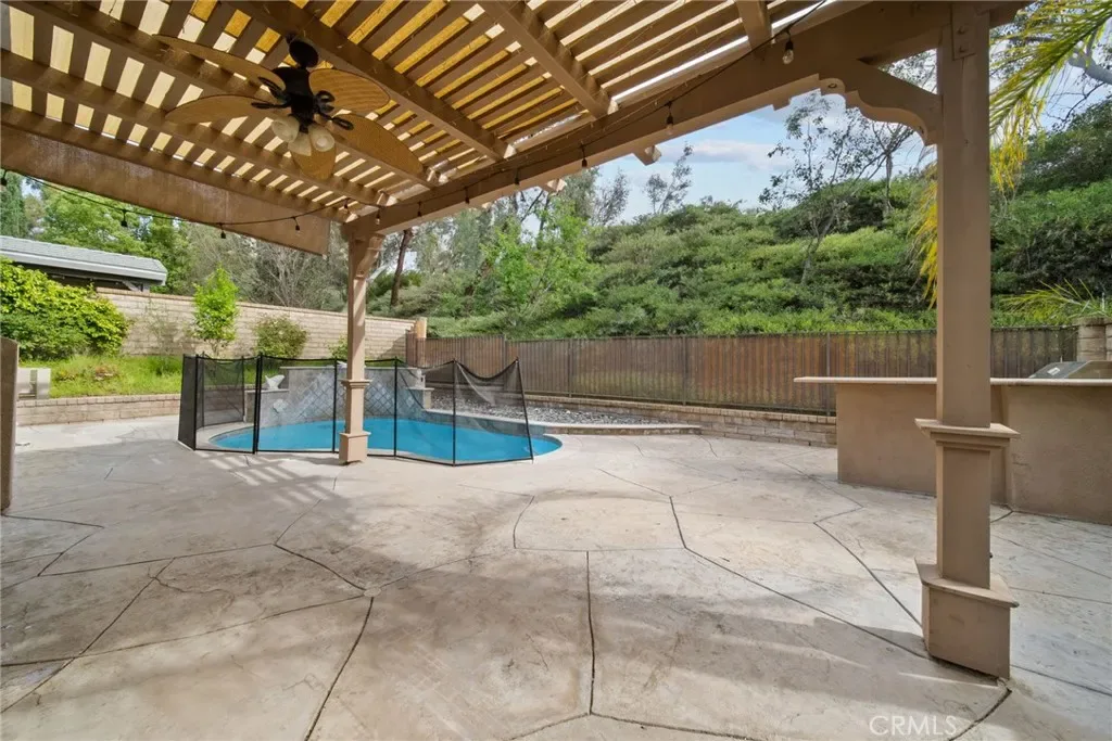 Welcome to 23344 Timberlane Dr in Valencia Northpark, an absolute dream of a home! This home features 4 bedrooms and 3 bathrooms. On the first floor you will find the family room, dining/living room and a beautiful kitchen with its own kitchen island, granite countertops, stainless steel appliances, and bar seating area. The downstairs bathroom was remodeled from a 1/2 bath to a 3/4 bathroom adding a stand up shower; Great for a quick rinse after using the private pool in the backyard. Upstairs you will find all four bedrooms and laundry room. The Primary has vaulted ceilings and overlooks the backyard with a fully remodeled ensuite bathroom with dual vanity, jetted soaking tub, stand up glass shower, and the most stunning granite on the floors and walls. Step outside to enjoy a crystal blue private pool and BBQ area hardscape’d into the layout. This home is energy efficient with a large bank of solar panels on the roof, owned and PAID OFF, PLUS a soft water system! Amazing opportunity to own a great home in a great location!
