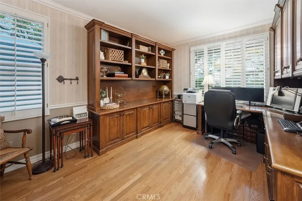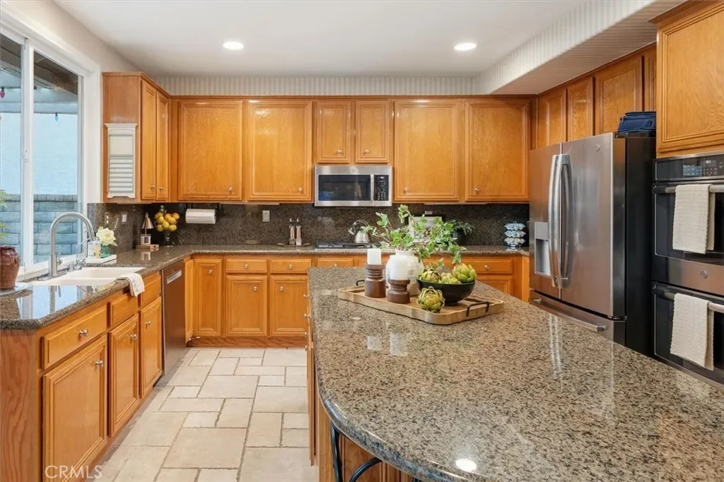 Tucked away on a quiet cul-de-sac in the highly sought-after Northbridge community of Valencia, this beautifully refreshed home offers scenic views, exceptional privacy, and the perfect blend of comfort, functionality, and lifestyle. Backing to a serene and expansive greenbelt, the setting provides a peaceful natural backdrop that feels like an extension of your own backyard. Step inside to discover light-filled living spaces designed for both everyday living and effortless entertaining. The thoughtfully updated interior features a warm and inviting living room, a spacious dining area, and a well-appointed kitchen that opens seamlessly to the family room—creating an ideal flow for gatherings of any size. A highly desirable downstairs bedroom and full bathroom provide the perfect setup for guests, extended family, or multigenerational living—adding both flexibility and long-term functionality to the home. Upstairs, the primary suite offers a relaxing retreat with generous proportions, while the secondary bedrooms are generously sized, filled with natural light, and full of charm — including one with a hidden retreat space and another with a built-in desk and bed frame, perfect for work, study, or creative use.The backyard is where this home truly shines. With unobstructed views of the lush greenbelt behind, it offers a sense of openness and tranquility that is rarely found—ideal for entertaining, play, or simply unwinding in a peaceful setting.A standout feature of the home is the converted garage flex space, thoughtfully designed as two separate rooms: a private media or TV lounge, and a fully equipped fitness studio ideal for workouts, yoga, Pilates, or even a dance space. This versatile setup offers endless possibilities for today’s lifestyle needs.Located just moments from award-winning schools, paseos, parks, shopping, dining, and easy freeway access, this home offers the best of Valencia living. Northbridge, Valencia living at its FINEst.