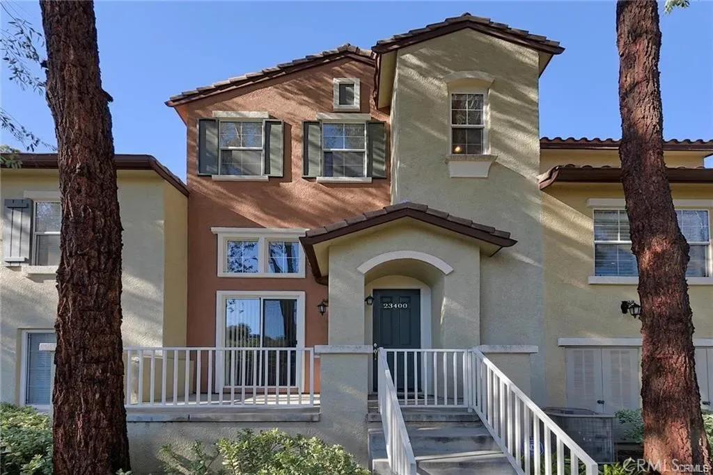 Enjoy elevated living in the highly desirable Valencia Village Walk community! Perfectly positioned in one of the most desirable locations in the complex. This beautifully upgraded 2-bedroom, 2.5-bath tri-level townhouse offers scenic views of the landscaped hillside with no front neighbors, creating a rare sense of privacy and tranquility. Step inside to a bright & inviting interior filled with natural light and tasteful upgrades, including travertine flooring, plush upgraded carpeting, mirrored wardrobes, and a spacious walk-in closet. The stylish gourmet kitchen features granite countertops, a full tile backsplash, stainless steel appliances, recessed lighting, elegant white cabinetry with decorative hardware, and a convenient breakfast bar—perfect for both everyday living and entertaining. The kitchen flows effortlessly into the dining and living areas, where large windows showcase lush greenery, and the welcoming living room features a raised hearth fireplace and sliding doors leading to your private patio. Ideal for relaxing evenings or weekend gatherings. A thoughtfully designed mid-level study nook with a built-in desk and cabinetry provides the perfect work-from-home space. Upstairs, both spacious bedrooms feature ceiling fans and private en-suite bathrooms with granite countertops, offering comfort and privacy for residents and guests alike. The upstairs laundry room adds everyday convenience. Additional highlights include direct access to a full-size two-car garage with extra storage space. Residents of Village Walk enjoy resort-style amenities, including a sparkling pool, relaxing spa, and direct access to scenic Paseo walking and biking trails. Ideally located just minutes from the I-5 freeway, award-winning schools, premier shopping, dining, and entertainment, this home offers the perfect blend of comfort, convenience, and lifestyle. Move-in ready and available soon—don’t miss the opportunity to live in one of Valencia’s most sought-after communities!
