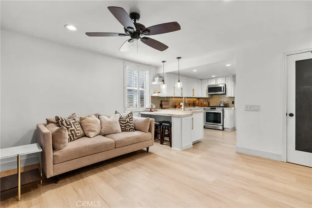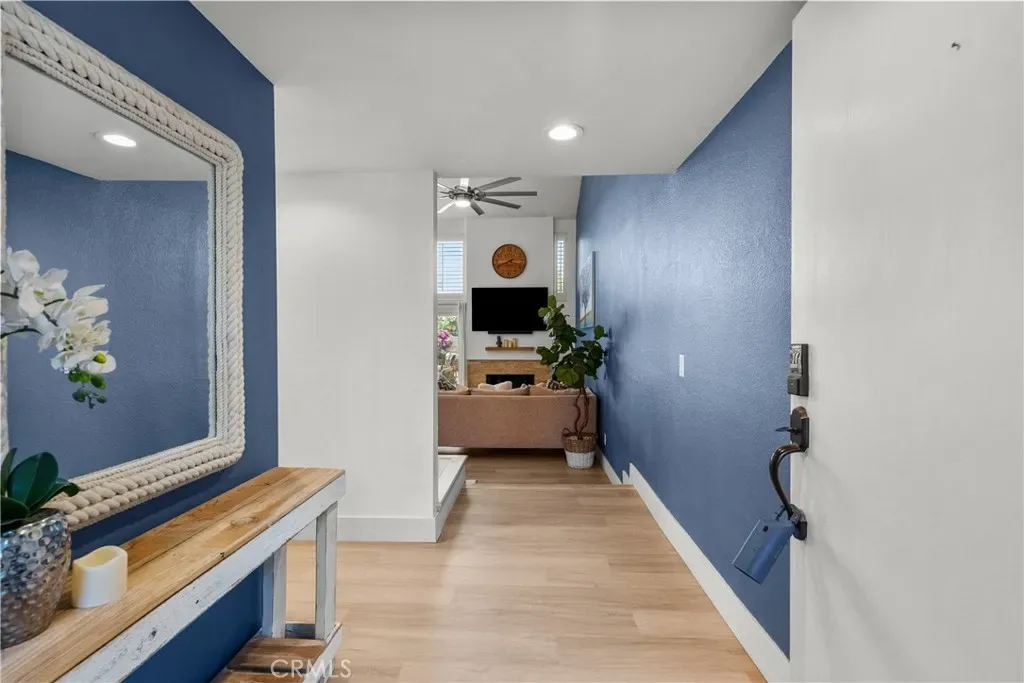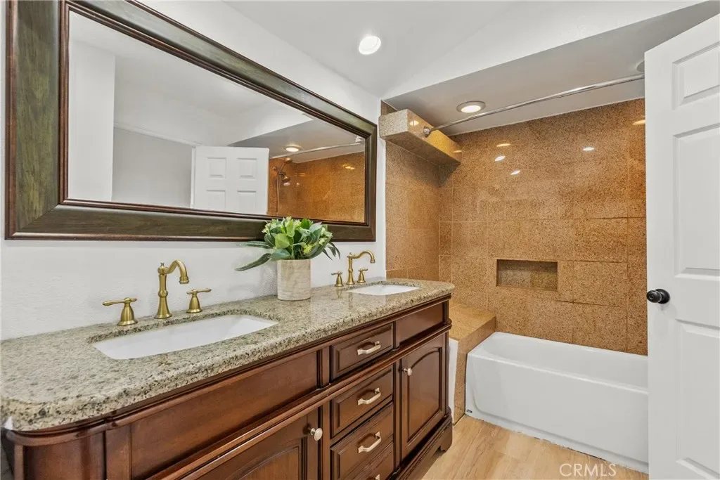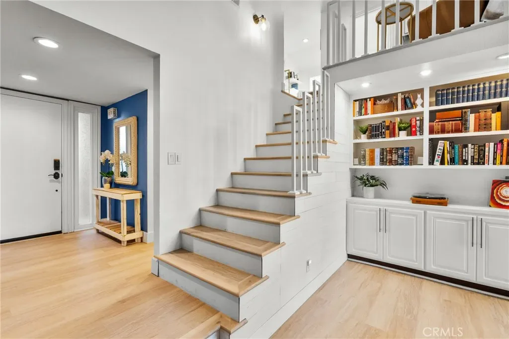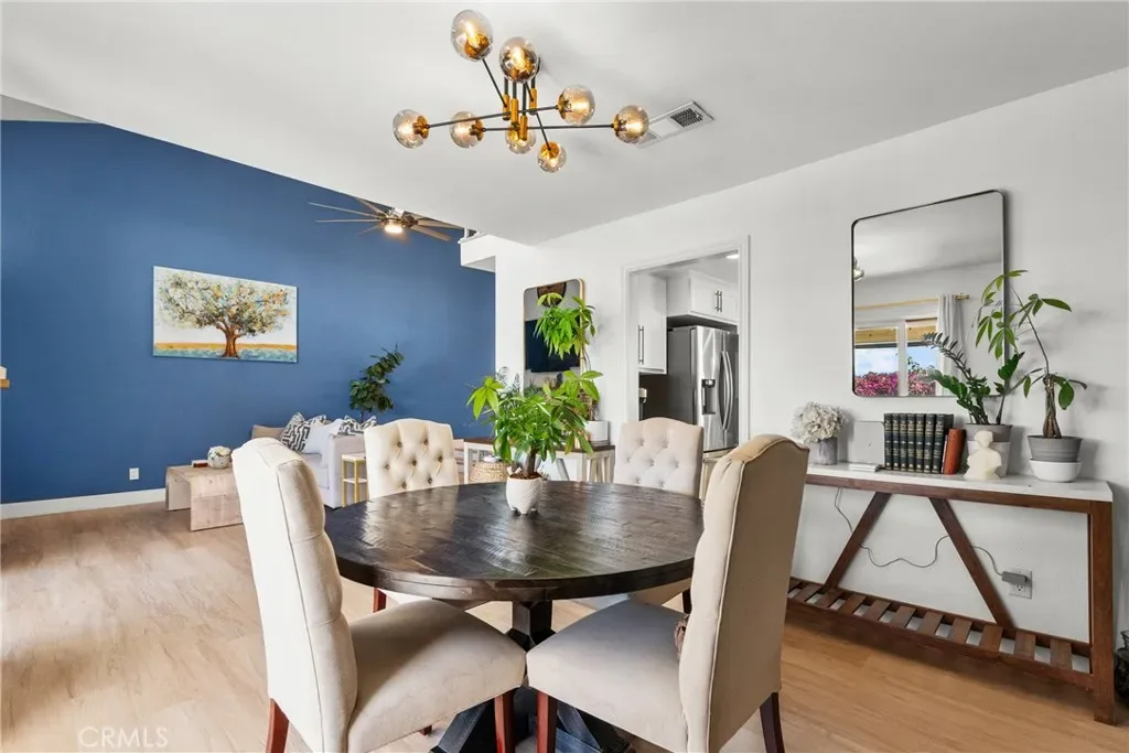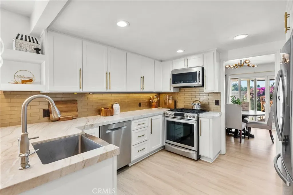Step into this stunningly remodeled home nestled in the exclusive gated Vista Valencia community. Boasting 3 generously sized bedrooms, 3 bathrooms, and 2,059 sq ft of living space, this residence stands among the most spacious condos in all of Santa Clarita. Inside, you’ll be greeted by dramatic vaulted ceilings and elegant luxury vinyl plank flooring that stretch throughout the home, creating a sleek and contemporary vibe. The chef-inspired kitchen features gorgeous granite countertops, crisp white cabinetry, and stainless steel appliances, seamlessly connecting to the open-concept family and dining areas—perfect for entertaining and everyday living. Downstairs includes a convenient ¾ bathroom, while upstairs offers a versatile loft space ideal for a home office, a serene primary suite with dual vanities in the ensuite bath, plus two additional bedrooms and a full hall bathroom. Additional highlights include an attached two-car garage with epoxy flooring and laundry hookups. Step outside to your private backyard patio—no rear neighbors!—ideal for relaxing or hosting guests. And when summer heats up, the community pool is the perfect spot to cool off. All this in the heart of Valencia, just moments from shopping, dining, and top-rated schools. This turnkey home blends modern elegance with exceptional convenience—don’t miss your chance to own it!