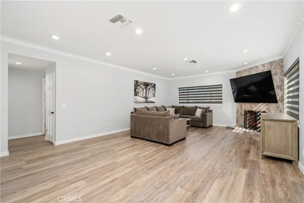 MOTIVATED SELLERS!!! Tucked away at the end of a peaceful cul-de-sac this spacious and partially remodeled two-story home offers an excellent opportunity for anyone needing extra space. The home features two fireplaces, four beds, four baths, plus a BONUS room, CONVERTED garage, large backyard, and a POOL. The main level offers an open-concept living and dining area with wood floors, recessed lighting, and custom window treatments. The remodeled kitchen includes modern finishes and newer stainless-steel appliances, including a five-burner stove. A DOWNSTAIRS BEDROOM with a full bathroom is ideal for guests. In addition, a bonus den/study with a full closet provides flexibility for a variety of uses. Upstairs, the oversized primary suite feels like a retreat with dual closets, fireplace, SAUNA, and plenty of space to unwind, complemented by two additional generously sized bedrooms and bathrooms. The private backyard is ideal for outdoor dining and entertaining, with a patio area and a sparkling pool. The converted garage is currently used as a recreation/game room with an A/C unit and can easily be returned to its original use. Conveniently located near Valley Glen Community Park, shopping, houses of worship, and public transportation . The blend of convenience and potential makes this home an excellent opportunity for anyone seeking both space and value!