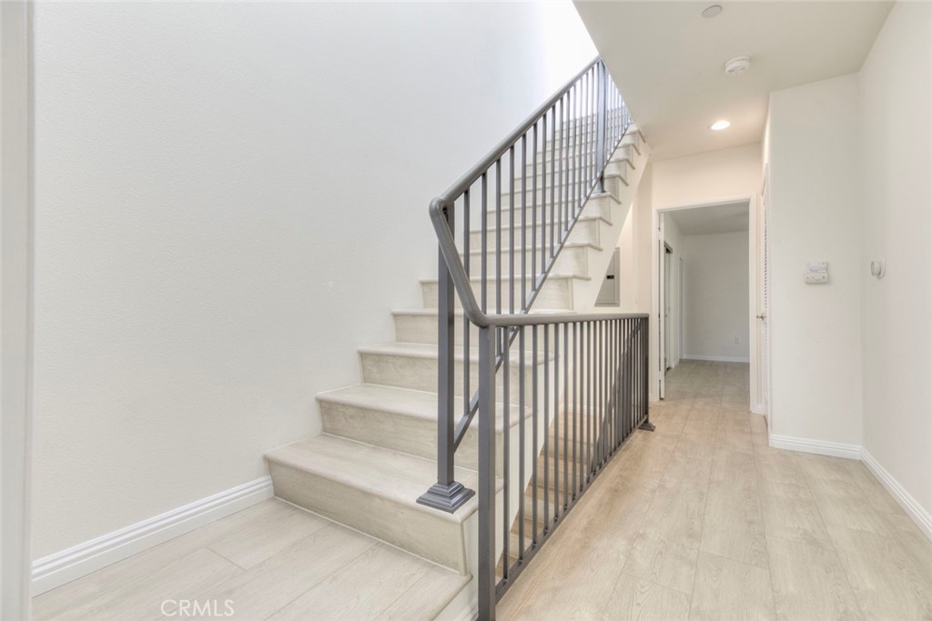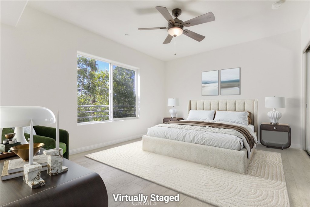 Welcome to this bright and private, rear end-unit stylish townhouse located in a desirable Valley Village neighborhood, offering 1,290 sq ft of comfortable living in a quiet, secure community. This home features updated luxury vinyl flooring, with the main level has an open and airy floor plan with a living room filled with natural light from multiple windows, a decorative fireplace, elegant crown ceilings, recessed lighting, and a dining area that flows seamlessly into the updated kitchen with stainless steel appliances and generous cabinet space. A convenient powder room completes the first floor. Upstairs are two spacious bedrooms, each with its own private ensuite bathroom and large closets, providing comfort and privacy. The hallway laundry area adds everyday convenience. On the top level, is your private rooftop patio, perfect for relaxing, entertaining guests, or enjoying the views. Additional features include two parking spaces in a secured subterranean garage. The community is disabled-friendly with an elevator lift. The 12-unit complex is well-maintained. HOA covers water, trash, earthquake insurance, and maintenance of common areas. Convenient location: near studios, schools, shopping, eateries, entertainment and freeways. This home offers the perfect blend of style, privacy, and convenience.
