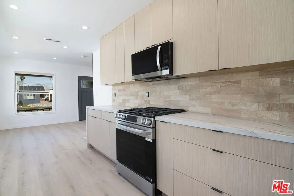This beautifully fully remodeled home is ready for tenant to call home. It is hard to find a rental done with such high end finishes. The home has incredible natural light with a great living and magnificent designer done kitchen. The home has 3 bedrooms, one full bathroom and a half bath near the kitchen. The home has central air and heat making it extremely comfortable. All of the bedrooms are similar in size. One bedroom leads out to the backyard as well as a door off the kitchen. The backyard is extremely spacious with a large orange tree and perfect for outdoor gatherings and dinners. The street and location is a quiet beautiful residential area in the the highly desired Lake Balboa pocket.