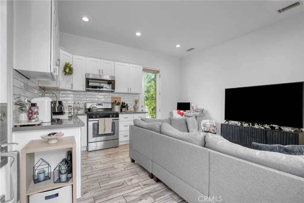 Beautifully updated single-level apartment in a gated fourplex. Featuring wood and tile flooring throughout, high ceilings, and a bright open layout. The contemporary kitchen offers brand-new cabinets, stone countertops, and stainless steel appliances; perfect for cooking and entertaining.