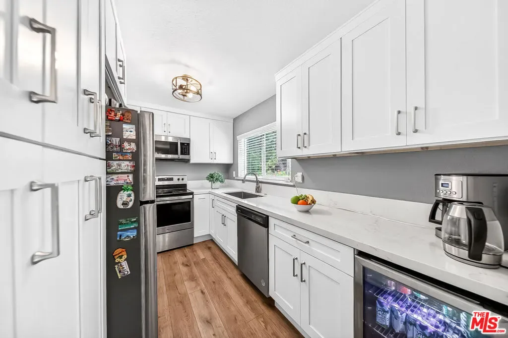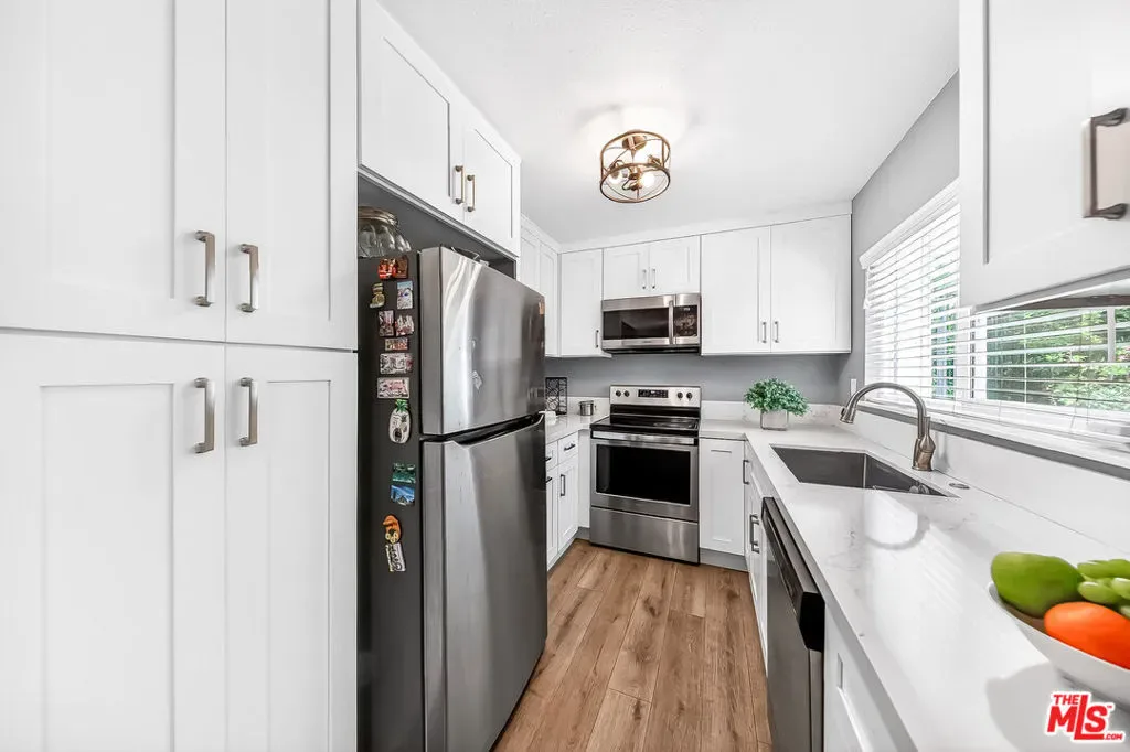 Turnkey two-story condo offering 2 bedrooms, 3 bathrooms (1 full and 2 half), and 1,167 sq. ft. of modern living. Fully remodeled from the studs up, this townhome delivers true peace of mind with everything brand new including windows, doors, flooring, lighting, and finishes throughout. The open-concept layout is anchored by a beautifully upgraded kitchen featuring quartz countertops, custom cabinetry, stainless steel appliances, and a wine fridge perfect for everyday living or entertaining. Upstairs, both spacious bedrooms offer comfort and privacy, while all bathrooms have been thoughtfully redesigned. Every detail has been carefully selected to create a clean, modern aesthetic that feels both elevated and inviting. Additional highlights include secured, covered tandem parking for two cars with storage and access to a community laundry facility just steps from the unit. Situated on a quiet, tree-lined street, this home offers a peaceful setting while still being close to local shops, markets, and easy freeway access. A rare opportunity to own a truly turnkey property just move in and enjoy.