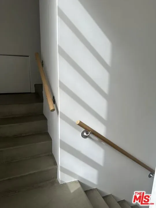 Townhouse in Venice – A Masterpiece by Ted Tokyo Tanaka, FAIA, 1989. This unique townhouse is in the thriving heart of Venice Beach. Around the corner, on Abbot Kinney Blvd. is a vibrant scene of shops, cafes, and restaurants, with the Beach and Main Street a few blocks away. One of four units, reflecting a disciplined architectural approach that evokes French, Spanish, and Bauhaus Modernism, this building creates a captivating visual interplay of light and shadow. The facade enhances an aesthetic appeal, offering a serene and private balance, a quiet street presence. Surrounded by a lush, mature garden, entry is through a private gated front patio that wraps around this corner unit. The entrance opens to over 20 ft. high ceiling living room defined by volume, proportion, and detail reveals majestic open plan living. The split level plan unfolds, with a mezzanine loft overlooking a semi open custom built kitchen, high end appliances, with a Scandinavian influence. Metal casement windows frame shifting light throughout the day. Two bedrooms feature large versatile rooms, double height ceilings, en-suite bathrooms and spacious balconies. The third bedroom is on a separate level with an adjoining bathroom.