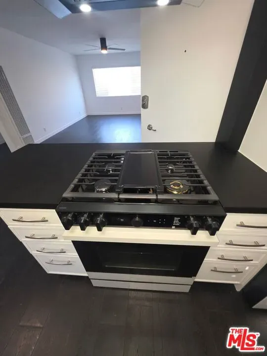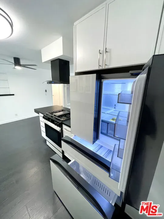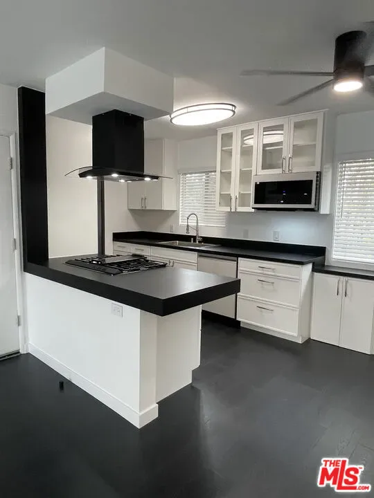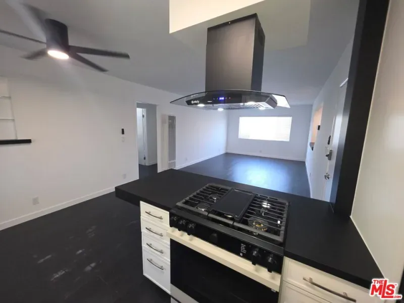 Bright & Modern Venice Apartment with Updated Kitchen + Community Outdoor Space. Welcome to this beautifully updated unit in the heart of Venice, featuring a sleek modern design with high-contrast finishes and an open, airy layout. This light-filled home offers spacious living areas with wide-plank flooring, large windows, and multiple ceiling fans for comfortable coastal living. The updated kitchen is a standout, featuring modern cabinetry, black countertops, stainless steel appliances, and a stylish center island, perfect for cooking and entertaining. The unit includes generous closet space and a clean, contemporary bathroom, all designed with a minimalist modern aesthetic. Residents can enjoy a shared outdoor patio area, ideal for relaxing and enjoying the Venice sunshine. Additional features include: Ceiling fans throughout for added comfort, community laundry on-site, one parking space available (separate lease), and well-maintained property in a desirable location. Located just minutes from the beach, Abbot Kinney, and local dining and shopping, this unit offers the perfect blend of style, comfort, and convenience.