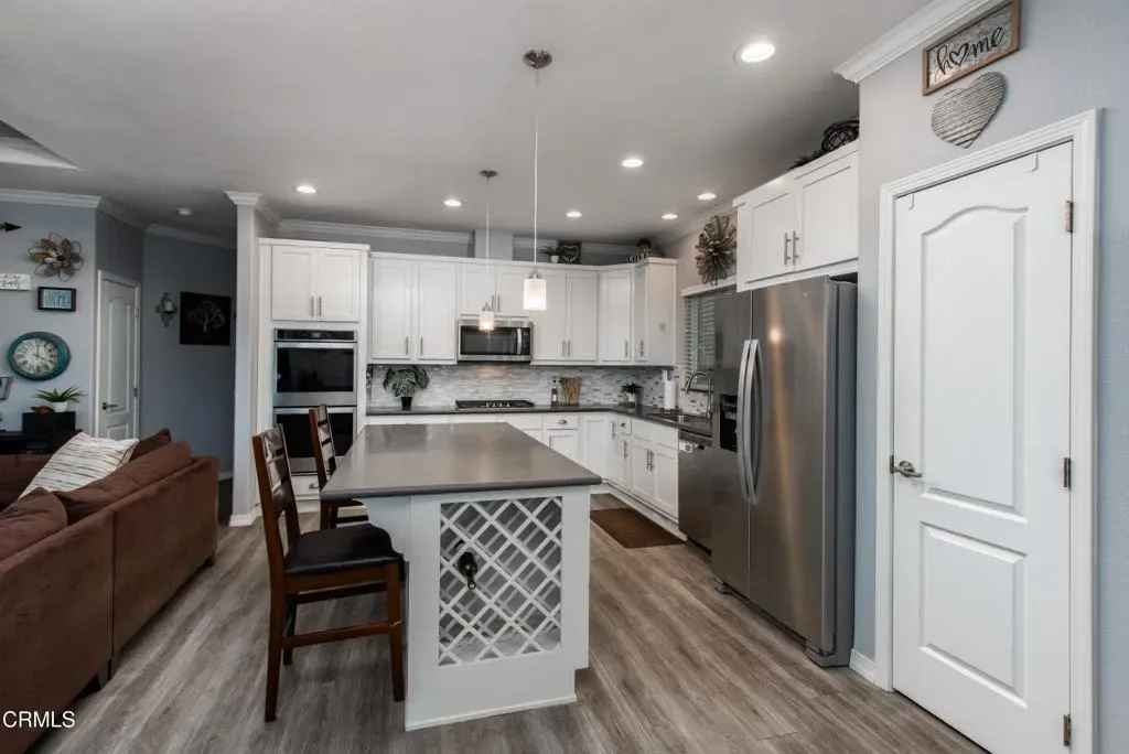Beautiful, modern 2019-built manufactured home in Imperial Ventura Mobile Estates, conveniently located near the 101, 126 and Ventura Harbor. This well-maintained home features an open, airy floor plan with 9+ ft ceilings, recessed lighting and LVP flooring throughout. The spacious kitchen offers a large island with breakfast bar, double ovens, stainless appliances, tile backsplash and abundant cabinetry. The living and dining areas flow seamlessly, ideal for everyday living and entertaining. The home includes 3 bedrooms and 2 bathrooms, highlighted by a primary suite with dual vanities, walk-in closet and a large custom tiled walk-in shower. Additional features include a covered patio, two storage sheds and a 3-car carport. Community amenities include a pool, clubhouse and greenbelt areas.