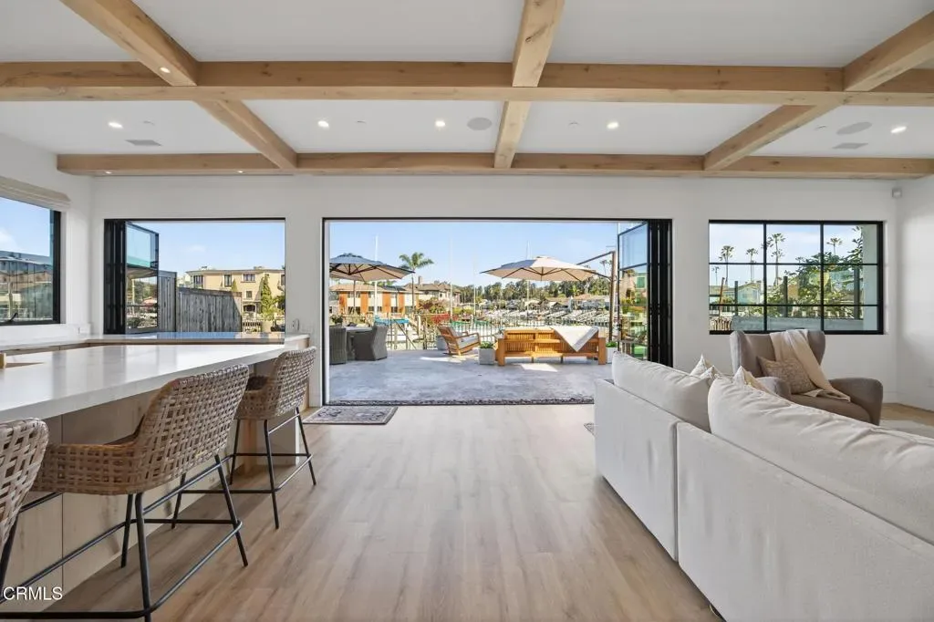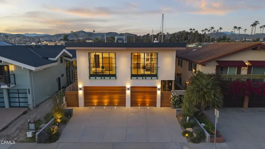 Experience extraordinary waterfront living in this masterfully re-imagined Ventura Keys dream home. Located on the Main Channel and designed as a true ‘Forever Home,’ no detail was overlooked–only the highest quality materials, craftsmanship, and technology were selected throughout its 3,800+ sq ft of beautifully curated space.This stunning 4-bedroom, 4-bathroom estate captures the essence of Ventura’s premier coastal lifestyle, complete with a 36′ private boat dock (with 45′ easement) and your own private elevator–a rare combination of luxury and convenience.From the moment you arrive, the level of customization is unmistakable: a striking custom SteelWorks front door, three breathtaking waterfront glass walls, matching steel-framed front windows, and a bespoke kitchen window framing a dramatic view of the channel.Embracing true indoor-outdoor living, the glass walls open seamlessly to a waterside deck with hot tub and firepit. Inside, refined design meets coastal warmth. Extensive use of white oak–including solid-core doors, custom kitchen cabinetry, exposed box beams, and solid wood stair treads–creates timeless natural elegance. The kitchen is a chef’s dream, appointed with a full suite of Thermador appliances, full-size built-in refrigerator and freezer, and the showstopping Lacanche enamel gas range imported from Burgundy, France. Additional refrigerator and freezer drawers in the dining room and upstairs family room ensure effortless entertaining.Four fireplaces–located in the living room, dining room, primary suite, and family room–add warmth and ambiance to both gathering areas and private retreats. Enjoy mesmerizing sunsets from the kitchen, living room, primary bedroom, and an additional upstairs bedroom.Modern living is elevated with full mobile integration, including security with video, climate control, motorized window coverings, garage access, and front gate management all at your fingertips. The home also features a 2.5-car garage with an integrated soundproof room, plus a whole-house water filtration and softening system.Located steps away from private pickleball courts and a private beach, this residence was thoughtfully rebuilt from the studs up and impeccably finished. This rare Ventura Keys masterpiece blends contemporary luxury with the serene beauty of waterfront living–truly a home without compromise.