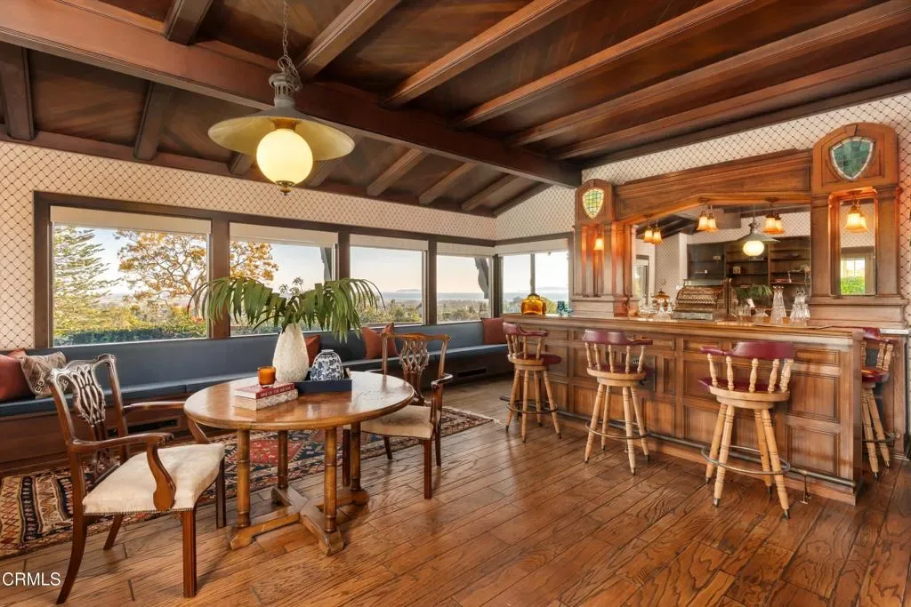 Experience breathtaking sweeping ocean and island views from nearly every room of this extraordinary 4-bedroom, 3.5-bath coastal estate offering approximately 4,288+/- square feet of living space on nearly half an acre. Designed with rooms of remarkable scale and proportion, the home effortlessly accommodates both comfortable daily living and grand entertaining. The 3,300+/- square foot main level features an expansive living room, inviting family room, formal dining room, and a bright kitchen with breakfast area. A south-facing game room showcases a fabulous vintage bar reminiscent of a bygone era. This level also includes a primary bedroom suite, office, guest bedroom, and 2.5 baths, creating a flexible and functional layout.The entire second level is devoted to a private primary suite retreat, capturing spectacular ocean vistas and offering exceptional seclusion from the rest of the home. This expansive sanctuary features two cedar-lined walk-in closets, a dressing room, and a spa-inspired bath, creating a peaceful escape above the main living areas. Unequivocally unique, this remarkable property blends timeless character, impressive scale, and unforgettable views–an exceptional opportunity to experience the very best of California coastal living.