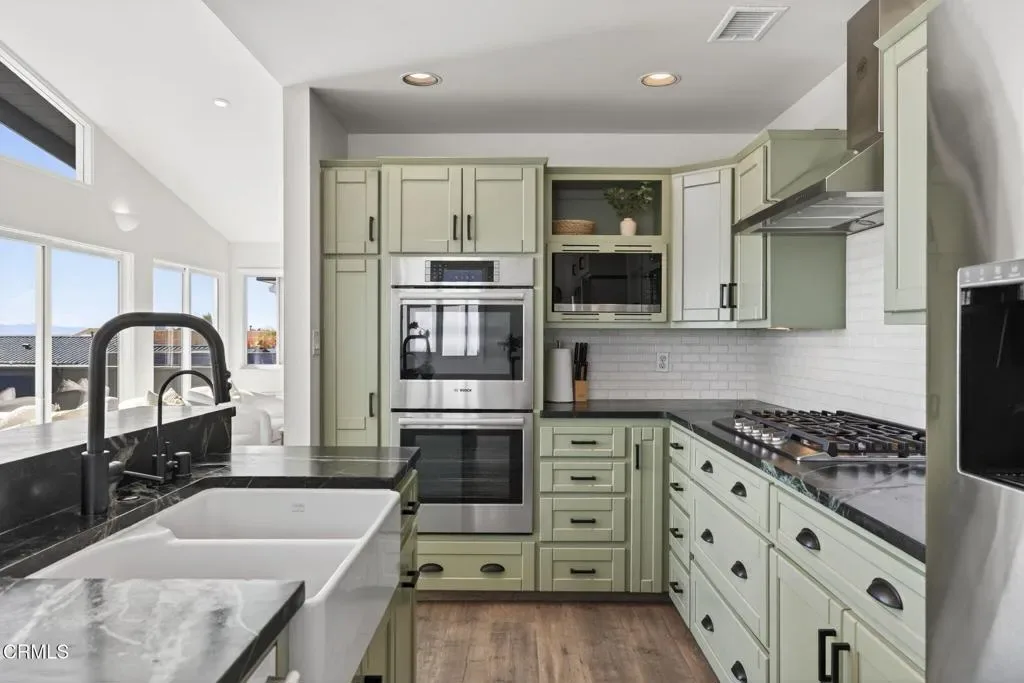 An exceptional opportunity to own a recently upgraded modern beach home within the private gated community of Faria Beach Colony, one of the Ventura coastline’s beautiful beachfront communities. This ‘one-back’ 4 bedroom turn-key beach house offers 2,088 square feet of thoughtfully designed living space with sweeping 180 degree ocean, island and surf views all from the comfort of your living room, kitchen and patio. The upper level is defined by vaulted ceilings and an open-concept living and dining area that flows seamlessly to a generous view deck positioned for sunset evenings above the Pacific. A custom kitchen with soapstone counters complements the home’s clean coastal aesthetic. Additionally on the upper level is the private primary suite which includes a walk-in closet and en suite bath, as well as an upper floor guest room and 1/2 bath. While 2 additional bedrooms, a full bathroom and a secondary living area below provide flexibility for guests or extended stays. Lush landscaping and intimate outdoor spaces enhance the sense of privacy. An outdoor shower and rare three-car garage, complete with bonus surfboard shaping room. In addition, the home features two private parking spaces in front and two additional spaces in the rear, providing abundant private parking for family and guests. Residents enjoy gated beach access located just steps from the house. Located just north of downtown Ventura and conveniently located between Santa Barbara and Malibu.
