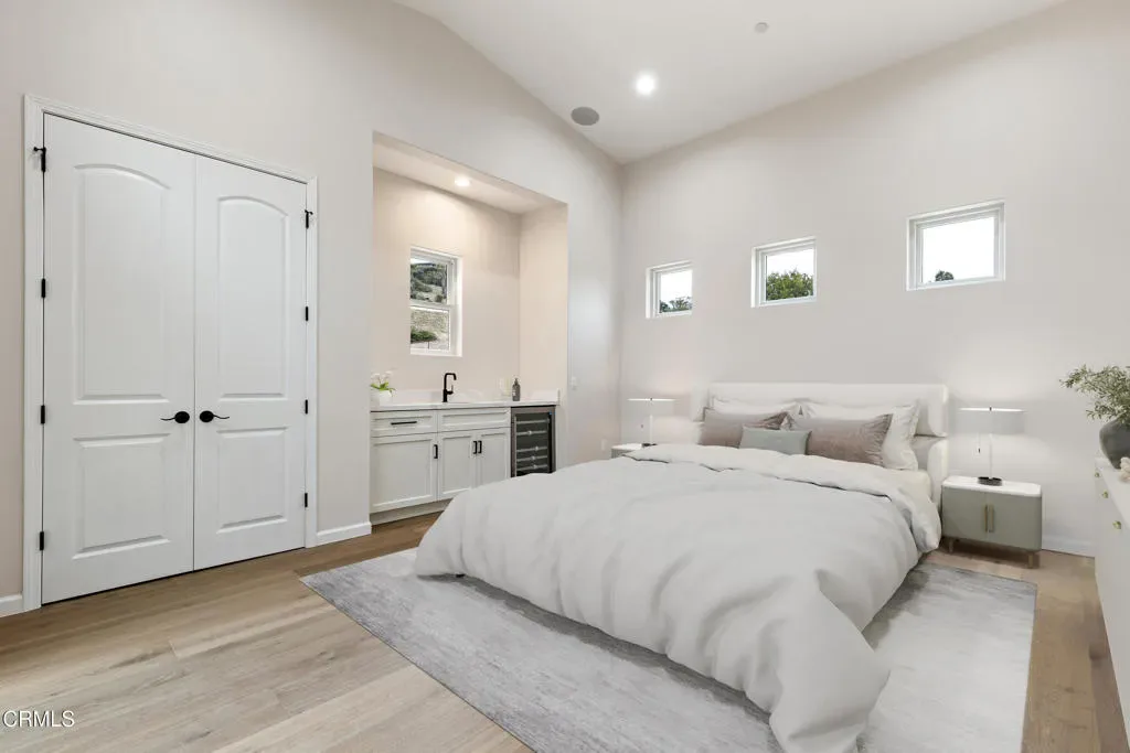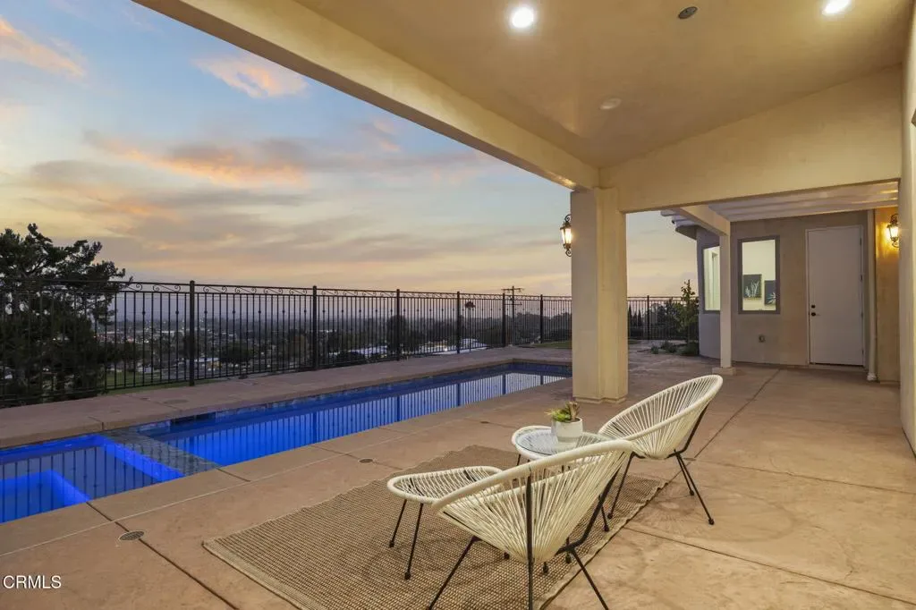 Stunning new construction view home on the sought-after Ventura hillside! This custom build offers 4 bedrooms plus a media room, 3 full bathrooms, a powder room, and has approximately 3,710 square feet of living space – all on one level! Outdoor living with a pool and spa are a few more of the special features to enjoy. With a Mediterranean style, the home was thoughtfully appointed with French oak floors, Thermador appliances in the gourmet kitchen, and wine storage for casual collectors. The large great room with surround sound technology has high ceilings and sliding doors that incorporate indoor/outdoor living. A covered patio for entertaining is adjacent to the pool and spa. The outdoor space overlooks Ventura, providing sweeping ocean, island and sunset views to the north and west. Another feature of the home is that the back bedroom can be used as an ADU with its own entrance, kitchenette and laundry. Green features include owned solar panels and EV charging infrastructure.Come see the spectacular views to the ocean and Channel Islands.