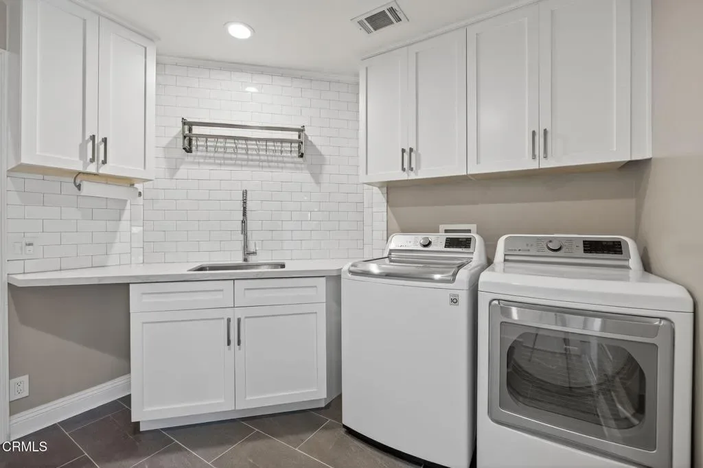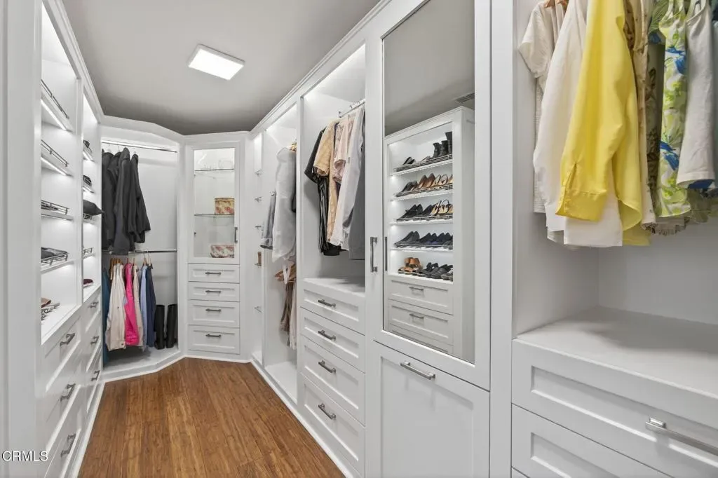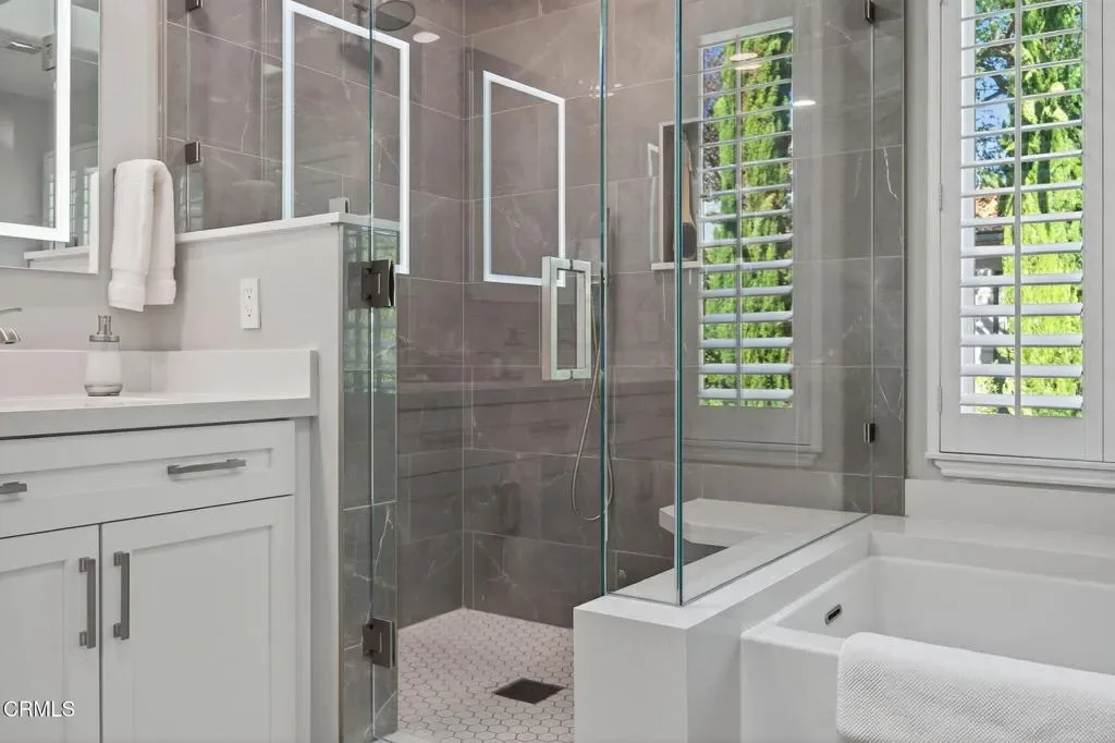 Located in Ventura’s sought-after Presidential Tract, 7405 Loma Vista Road has been thoughtfully reimagined for buyers who value quality, longevity, and refined design. In today’s market, where many homes require significant updates, this residence stands apart as a carefully completed home–offering the ease and confidence of extensive improvements already in place. The result is a calm, cohesive living environment where form and function are equally considered. Engineered with both comfort and independence in mind, the home features owned solar paired with a Tesla Powerwall, delivering energy efficiency and peace of mind. The professionally designed chef’s kitchen anchors the main living space and showcases a Viking 7 Series range, Samsung Bespoke double wall ovens with Flex Duo(tm), fully replaced high-end cabinetry, and a custom maple end-grain butcher block island. Additional details include a Grohe foot-control faucet, pot filler, restaurant-style range hood, and a walk-in butler’s pantry–creating a kitchen that is as practical as it is visually striking.The primary suite serves as a true retreat, featuring the home’s third fireplace and a spa-inspired bathroom with radiant heated floors extending into the water closet. The custom walk-in closet is exceptionally well designed, offering extensive built-in cabinetry, abundant drawer space, and integrated LED lighting. A main-level bathroom with a walk-in shower provides flexibility for guests or multi-generational living, while the upper-level loft offers a light-filled, adaptable space ideal for a home office, library, or playroom.Outdoor spaces are equally intentional, with Mediterranean-inspired landscaping that blends beauty with sustainability. Drought-tolerant perennials, professional hardscape, raised garden beds, mature fruit trees, and smart irrigation create a welcoming and low-maintenance setting ideal for both everyday enjoyment and entertaining.Behind the scenes, the home is equipped with an impressive array of modern systems designed for long-term performance. A four-zone HVAC system with smart thermostats, tankless water heating, whole-house water filtration and softening, and hot water recirculators in both the kitchen and primary suite support comfort throughout. The three-car garage includes a 100-amp EV-ready sub-panel, while a motorized foyer chandelier hoist adds convenience.This is an opportunity to own a home where the vision has already been realized for you.