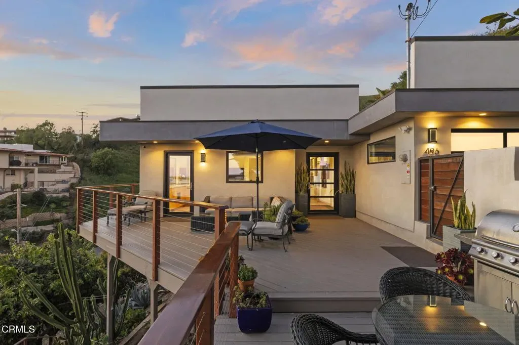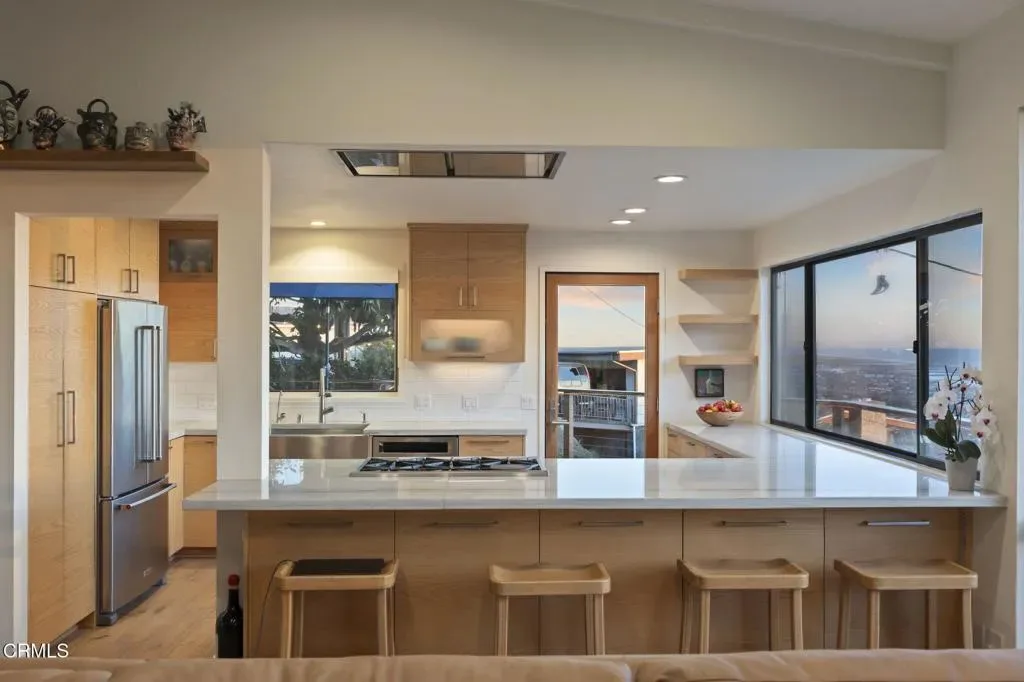 Welcome to 496 Lupine Way in McElrea Heights — a special Ventura hillside home where the views truly steal the show. Perched high above the city at the end of a quiet cul-de-sac, this beautifully renovated single-story retreat takes full advantage of its incredible setting, offering sweeping panoramic views of the Pacific Ocean, Channel Islands, and the twinkling city lights below. From the moment you step inside, the scenery becomes part of everyday living. Expansive windows throughout the home frame the coastline like artwork, filling the space with natural light and creating a seamless connection between indoors and out. Whether it’s watching the morning marine layer roll away or enjoying colorful sunsets in the evening, the views are simply unforgettable. The interior has been thoughtfully updated with Canadian white oak hardwood flooring, an open and comfortable layout, and stylishly remodeled kitchen and baths. The kitchen features custom cabinetry, high-end appliances, and a clean, modern feel that’s both functional and inviting. One of the true highlights of the home is the expansive view deck — it feels like your own private observation point above the coast. Perfect for relaxing, entertaining, or simply taking in the ocean breeze, the deck includes built-in speakers powered by a Bluetooth-enabled Sonos amp, making it an ideal setting for everything from quiet mornings to sunset gatherings. The home also offers numerous system and exterior upgrades, including solar panels, a Tesla universal wall connector, newer HVAC with updated ducting, and a whole-house attic fan. Additional improvements include updated exterior finishes, upgraded decking, and a whole house charcoal water filter, water softener and R/O for drinking water. Outside, the beautifully landscaped grounds create a peaceful hillside retreat, complete with newly built trail steps, updated irrigation, mature avocado trees, and a variety of fruit trees. Set on an expansive 20,813-square-foot lot, the property provides rare privacy and a sense of space that’s hard to find on the hillside — offering a natural buffer from neighboring homes while enhancing the home’s tranquil, secluded feel. This is a rare opportunity to own a move-in ready Ventura hillside home where the views, privacy, and lifestyle come together in a truly exceptional way.