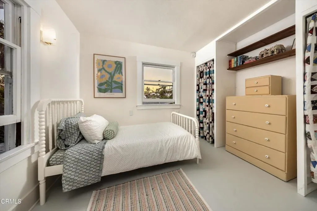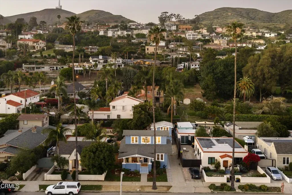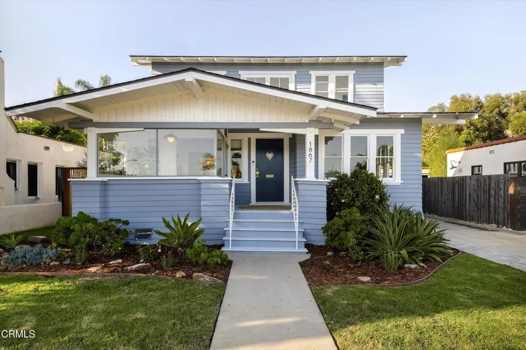 A remarkably intact Airplane Bungalow from the early 20th century, this 3-bedroom, 1.5-bath home reflects a distinct architectural moment in California. Distinguished by a second-story living space centered on the roof – and often likened to the cockpit of early aircraft – the home represents a regional interpretation of the American Craftsman style, designed to maximize light, airflow, and views. At 1867 Poli, this defining upstairs feature draws in coastal breezes, afternoon light, and a glimmer of the Channel Islands through a series of double-hung windows and a pair of Peter Pan-like casements. Downstairs, a well-proportioned living room opens to the dining area and kitchen, while original pocket doors offer flexible use of a generously sized adjoining room. Original character endures throughout in a range of preserved architectural details, including wavy glass panes, select pine floors, solid paneled doors with original hardware, and even a working skeleton key. A freestanding two-story garage, permitted in 1928-29, features carriage doors, an upstairs ‘sleeping room,’ a half bath, and ADU potential. Watch the light shimmer through a screen of silver sheen, unfurl in the sunroom where plants and daydreams flourish, or rinse off the surf and unwind in the backyard. Recent updates include a new electrical panel, water heater, private sewer lateral, updated bathroom fixtures, refreshed paint, a paver patio, and rear landscaping- setting the stage for this unique home’s next steward. Ideally located at the historic edge of Midtown, adjacent to the Hobson Heights neighborhood and the secluded, multi-acre campus of St. Catherine by the Sea, 1867 Poli offers a quiet setting just blocks from Ventura’s thriving Midtown corridor- home to independent shops, eateries, bakeries, grocers, art studios, and gathering places – and only minutes from Ventura’s storied coastline. Good things never go out of style.