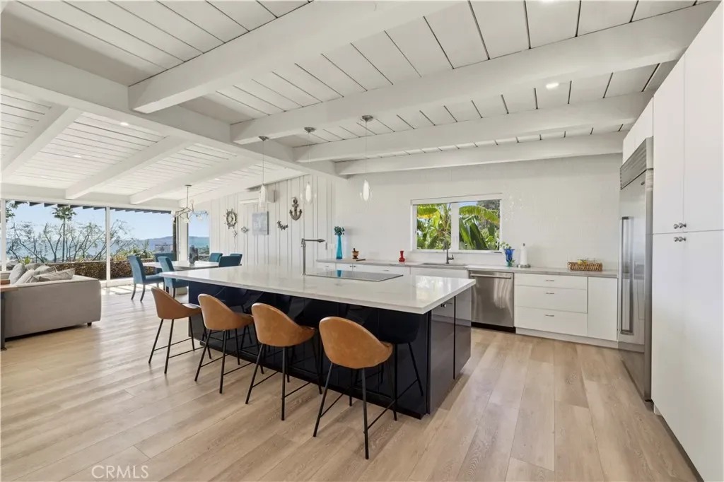 Perched on a prized Ventura hillside, this stunning home delivers panoramic views of the Pacific Ocean and the Channel Islands from one of the city’s most coveted pockets. An open, light-filled floor plan welcomes you with one of the most compelling indoor/outdoor living experiences in the area . The living room dissolves seamlessly into the backyard through a wall-to-wall sliding glass door with automatic shades, opening onto a beautifully terraced yard designed for effortless entertaining with sweeping ocean and island views as your backdrop.