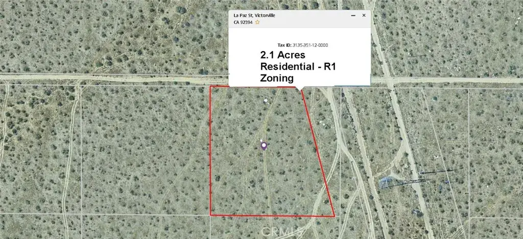 ***Come VIEW and MAKE an OFFER TODAY! Affordable LAND OPPORTUNITY located in EXPANDING Victorville CA. The 2.1 acre parcel is zoned R-1 allowing for a single family residential development. Very close to Hwy 395, the site offers great access to all of Southern CA and is only minutes Away from Interstate 15. Very close to newly built tracts and retail centers, the property is right in the path of growth. An ideal piece of land for anyone looking to speculate on future expansion. Plus the property is adjacent to utility lines. A must see opportunity before it’s too late.***