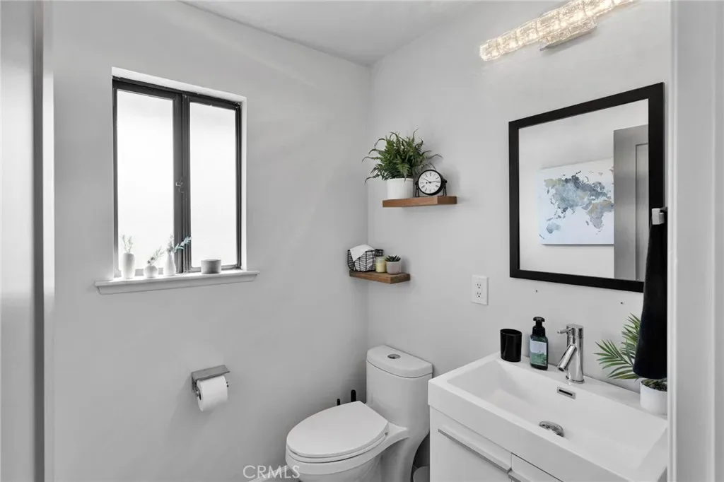 The ground level includes two additional bedrooms and a spa-style bathroom with deep soaking tub, rain and dual shower heads, and Bluetooth speakers for an elevated experience. Additional highlights include a tankless water heater, freshly painted deck, and fully landscaped with natural grass and mature pomegranate and pistachio trees—no artificial turf.