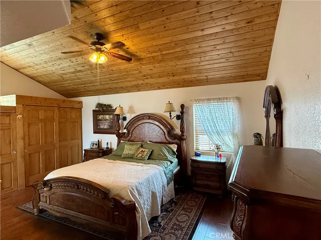 This open floor plan with vaulted ceilings features entry, spacious living room with wood burning fireplace, dining room with French doors out to the back patio and large kitchen. Kitchen has newer appliances, walk in pantry, cabinets that pull out, lots of drawers, and a large island for prep work or to sit around as a family. To the left of the home are 2 nice size bedrooms, main bath and the master bedroom with walk in closet and adjoining bath. To the right of the living area is access to the double car garage, bonus room for whatever you choose to make it and the 2nd Master bedroom and bath. This custom room has pine ceilings and the feel of being in a mountain resort with access to the great backyard. In the back you have a 15×35 workshop with 220 power, fenced garden with irrigation, 2 storage sheds, beautiful fruit trees and an outdoor deck that would be great for those large family get togethers. There are 32 solar panels that are paid for, central air and swamp cooler in garage not on roof that is duct through-out the home, security doors front and back, alarm system, in home laundry room with folding table, sink and ample storage, central vacuum, solar electric gate across the front driveway, and custom drainage to divert water from the front when it rains to a retention pond under the large deck in the back.