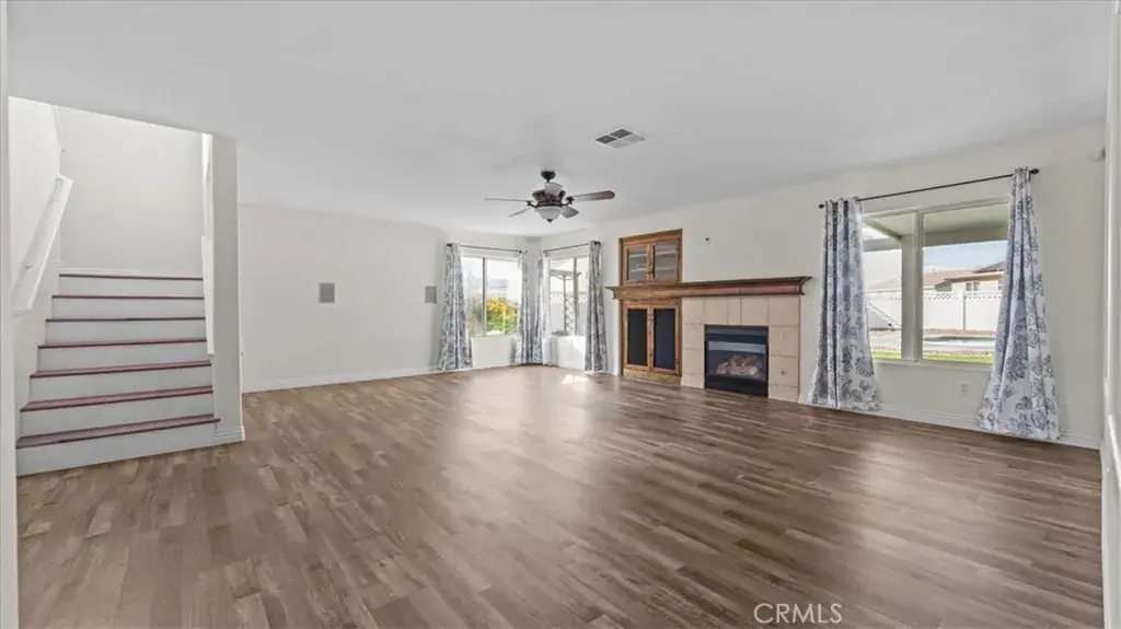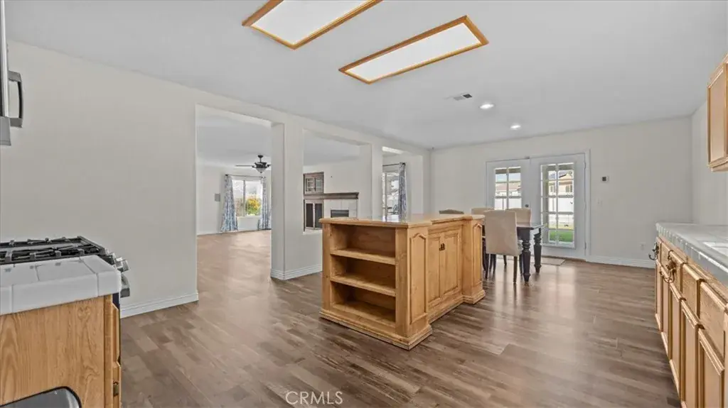 Step inside to find a warm and inviting living space highlighted by a cozy fireplace with a custom mantel and included entertainment equipment. The kitchen is a true centerpiece, featuring a stunning Spanish-accent tiled island, ample storage, and appliances that are just two years new — including the dishwasher, stove, microwave.